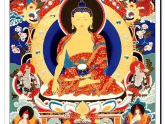 མཁའ་མཉམ་འགྲོ་ལ་མཁྱེན་བརྩེས་རབ་དགོངས་ནས། །གྲངས་མེད་གསུམ་དུ་ཚོགས་གཉིས་རབ་རྫོགས་ཏེ། །སྟོང་གསུམ་མི་མཇེད་ཞིང་གི་དཔལ་གྱུར་པ། །འདྲེན་མཆོག་ཤཱཀྱའི་ཏོག་ལ་ཕྱག་འཚལ་ལོ། །ཤེས་རབ་ཆེན་པོས་དེ་ཉིད་ལེགས་རྟོགས་ནས། །ྦབརྩོན་པ་ཆེན་པོས་གོ་འཕང་མཆོག་བརྙེས་པ། །