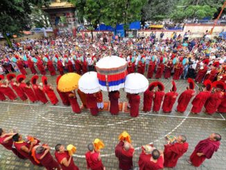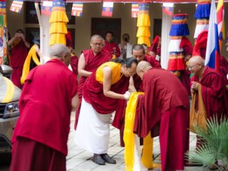 འཆི་༵མེད་༵ཚེ་༵དབང་ཚེ་དཔག་མེད་མགོན་དང་།།འཆི་༵མེད་༵ཚེ་༵སྦྱིན་ཡིད་བཞིན་འཁོར་ལོ་མ།།འཆི་༵མེད་༵ཚེ་༵ལྷ་རྣམ་པ་རྒྱལ་མ་ཡིས།།འཆི་༵མེད་༵ཚེ་༵ཡི་དངོས་གྲུབ་བསྩལ་དུ་གསོལ།།ངག་༵ལ་དབང་༵འབྱོར་ཟུར་ཕུད་ལྔ་པའི་ཟླ།།བསྐལ་བཟང་ཀུན་༵དགའ་༵ཐེག་༵ཆེན་༵དཔལ་༵དུ་འབར༵།།ཕྲིན་༵ལས་༵བསམ་༵འཕེལ་༵དབང་༵གི་རྒྱལ༵་པོ་ཉིད།།སྐུ་ཚེ་བརྟན་ཅིང་མཛད་འཕྲིན་རྒྱས་གྱུར་ཅིག།མཁྱེན་༵པའི་དཔལ་མངའ་ཡེ་ཤེས་མེ་ལོང་མཚན།།བརྩེ་༵བའི་ཐུགས་རྗེ་འཕགས་མཆོག་མིག་མི་འཛུམ།།ནུས་༵པའི་སྟོབས་མངའ་ལག་ན་རྡོ་རྗེ་སྟེ།།ང་ དེ་ལས་མང་་་