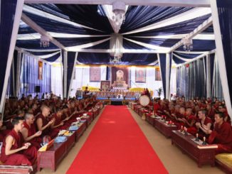 དུས་གསུམ་རྒྱལ་བའི་སྙིང་བཅུད་གཅིག་བསྡུས་པ།།ཁྱབ་བདག་རྡོ་རྗེ་འཆང་དང་དབྱེར་མེད་པའི།།ཀུན་མཁྱེན་པདྨའི་མཚན་ཅན་འགྲོ་བའི་མགོན།།སྐྱེ་དགུའི་འགྲོ་རྣམས་ཁྱེད་ལ་མགོས་ཕྱག་འཚལ།།སྔོན་སྦྱངས་ལས་ཀྱིས་ཤེས་རབ་འགྲན་བྲལ་ཞིང་།།མཁྱེན་དཔྱོད་བརྩེ་བས་སྐྱེ་རྒུའི་མགོན་གྱུར་བ།།ལེགས་ཚོགས་ཡོན་ཏན་མཐའ་དག་ལྡན་པ་པོ།།དངོས་འབྱོར་ཡིད་མཆོད་བདག་རྒྱུད་བྱིན་གྱིས་རློབས།།བསླབ་གསུམ་རྒྱན་གྱི་ཕྲེང་བས་སྐུ་ལུས་བལྟམ།།གསུང་དབྱངས་ཡན་ལག་དྲུག་ཅུའི་ངག་དང་ལྡན།།སྟོང་ཉིད་སྙིང་རྗེའི་ཆུ་གཏེར་ཐུགས་ལ་རྫོགས།།སྐུ་གསུང་ དེ་ལས་མང་་་