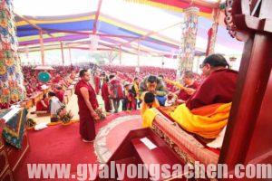ཕྱི་ཚེས་༣༡ ཉིན་༧ སྐྱབས་མགོན་༧གོང་མ་བདག་ཁྲི་རིན་པོ་ཆེ་མཆོག་ནས་དད་ལྡན་སྐྱ་སེར་ཕོ་མོ་བདུན་སྟོང་བརྒལ་བར་རྡོ་རྗེ་སེམས་པའི་བཀའ་དབང་བསྩལ་སྐབས། སྤྱིར་སངས་རྒྱས་ཀྱི་བསྟན་པ་མི་ཉམས་གོང་འཕེལ་དང་ཉམས་པ་སླར་གསོའི་ཆེད་དུ། སྦྱིན་བདག་ངོ་སྲུང་དང་དཔལ་འབྱོར་འདུ་འགོད་གལ་ཆེན་ཡིན་ཡང་། དཔལ་འབྱོར་འདུ་འགོད་དང་སྦྱིན་བདག་ངོ་སྲུང་གི་ཆེད་དུ་སངས་རྒྱས་ཀྱི་བསྟན་པ་བློས་གཏོང་མཁན་དེ་འདྲ་ཡོད་ཚོད་འདུག དེ་ལྟར་བྱས་ན་དོན་ངོ་མའི་དམིགས་ཡུལ་དང་རྒྱབ་འགལ་དུ་སོང་བས། ལས་གང་བྱས་ཀྱང་སངས་རྒྱས་ཀྱི་བསྟན་པ་ལ་རྒྱབ་འགལ་དུ་མ་སོང་བར། ཐུགས་ཁུར་གཙོར་བཞེས་ཅི་ནས་ཀྱང་གནང་རྒྱུ་གལ་ཆེན་ཡིན་པ་དང་། སྤྱིར་སངས་རྒྱས་ཀྱི་བསྟན་པ་ལུང་རྟོགས་གཉིས་ཀྱི་སྒོ་ནས་འཛིན་དགོས་དུས། ལུང་སྡེ་སྣོད་གསུམ་ལ་འཆད་ཉན་མཐར་ཕྱིན་པར་གནང་རྒྱུ་གལ་ཆེན་ཡིན་པ་དང་། ཁྱད་པར་དུ་ཕྱིའི་ཀུན་སྤྱོད་ན་བཟའ་མནབ་སྟངས་ཡན་ཆད་བསྟན་པ་སྤྱི་ལ་རྨ་མི་འབྱིན་པ་ཐུགས་སྣང་གནང་རྒྱུ་གལ་ཆེན་ཡིན་པ་བཅས་བཀའ་སློབ་བསྩལ་ཡོད་པ་རེད།