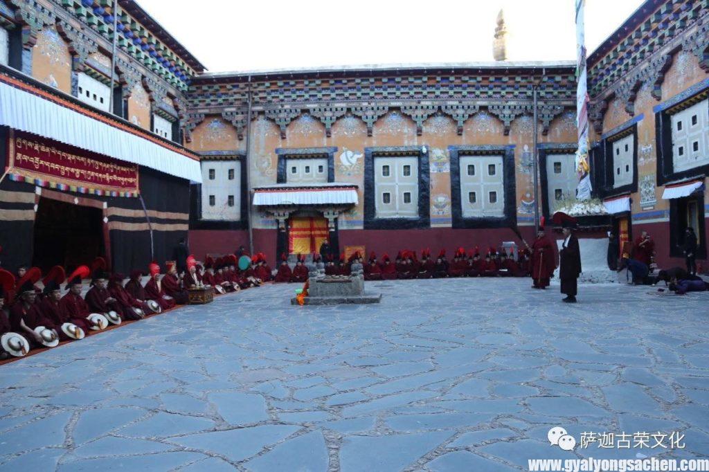 སྐྱེད་ལྷས་དཔོན་སློབ་སེངྒེ་བཟང་པོ། བྲག་དཀར་དཔོན་སློབ་བསོད་ནམས་སེངྒེ་ལ་སོགས་པའི་དགེ་འདུན་བརྒྱ་ཕྲག་དང་ཕྱེད་ལ་ཉེ་བས་ཚོགས་བཞུགས་སྒྲུབ་པ་མཛད་པ་རེད། ཚེས་བཅུ་བཞིའི་ཉིན་མཁན་པོ་དགེ་འདུན་རྒྱ་མཚོ་མཆོག་གིས་ཆོས་ཞུ་བ་མང་ཚོགས་ལ་བཀའ་སློབ་ལམ་སྟོན་དང་། བཤད་གྲྭའི་དཔོན་སློབ་ཇི་ཡོད་ཀྱིས་གོས་སྐུ་གདན་འདྲེན་དང་འདུ་ཁང་ཆེན་མོར་བླ་མ་ས་སྐྱ་པ་ཉིད་ཀྱིས་རབ་གནས་མཛད་པའི་ས་ཆེན་ང་འདྲ་མའི་སྐུ་བརྙན་དྲུང་དུ་བླ་མ་མཆོད་པ།