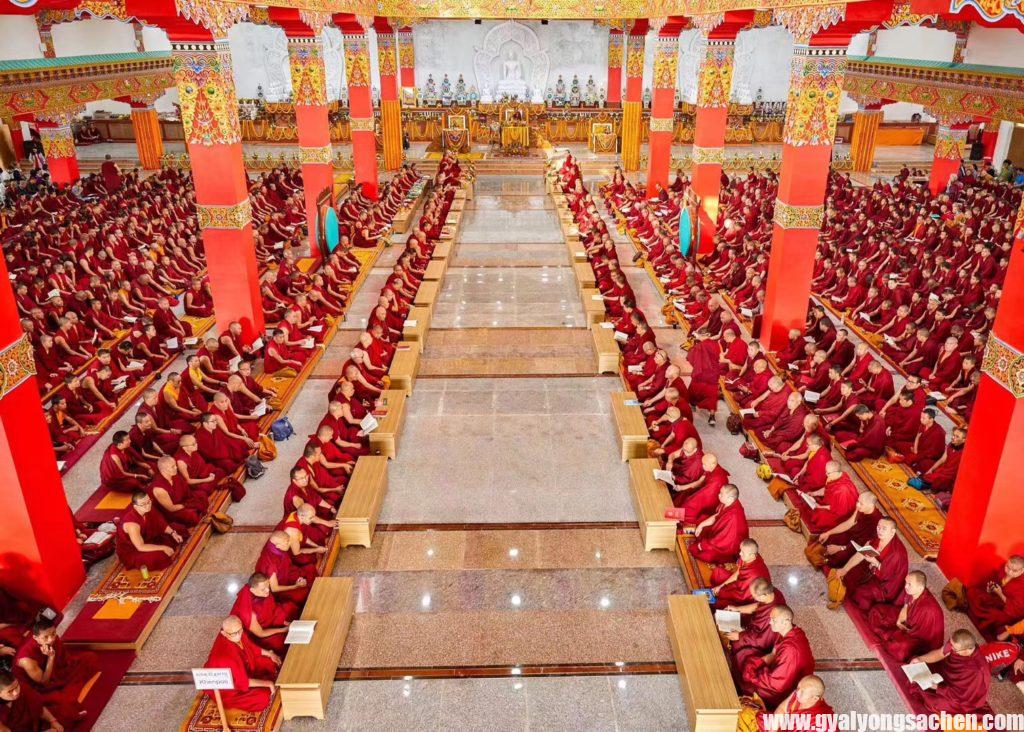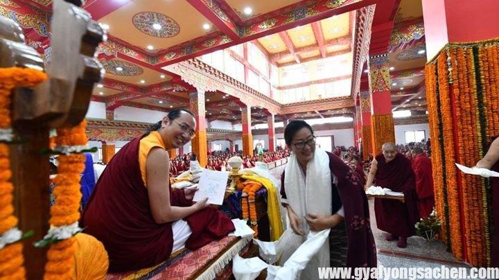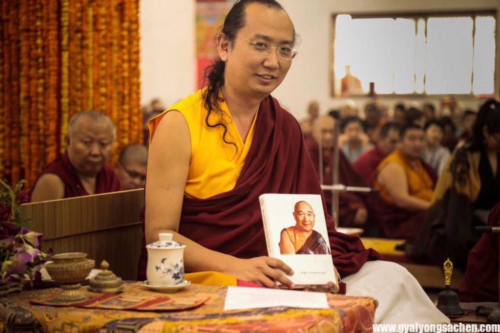 ཁ་རྩང་ཕྱི་དྲོ་ཆུ་ཚོད་གསུམ་པར་རྡོར་གདན་དཔལ་ས་སྐྱའི་གཙུག་ལག་ཁང་ཐེག་གསུམ་ཆོས་གླིང་དུ་༸སྐྱབས་མགོན་༸གོང་མ་ཁྲི་ཆེན་རྡོ་རྗེ་འཆང་ཆེན་པོ་མཆོག་དང་། ༸སྐྱབས་མགོན་༸གོང་མ་ཁྲི་འཛིན་རིན་པོ་ཆེ་རྣམ་གཉིས་དབུ་བཞུགས་ཐོག འཁོན་གདུང་རྣམ་པ་དང་། དཔལ་སྐྱའི་བསྟན་བདག་བླ་ཆེན་རྣམ་པ། བསྟན་པའི་གསལ་བྱེད་མཁན་པོ་བླ་སྤྲུལ་བརྒྱ་ཕྲག་ལྷག་དང་། དགེ་འདུན་ཞལ་གྲངས་སྟོང་ཕྲག་འགའ་འཛོམས་པའི་དཀྱིལ་འཁོར་དུ། ལོ་ཤས་གོང་དྲིན་ཅན་རྩ་བའི་བླ་མས་ཇི་ལྟར་བཀས་བསྐུལ་བ་ལྟར་གུས་པས་རང་གི་ཤེས་བརྩོན་གྱི་ནུས་པས་ལྕོགས་ཚོད་ཀྱིས་ཁུར་བླངས་པའི་ཐོག་ནས་ཡོངས་ཀྱི་དགེ་བའི་བཤེས་གཉེན་མཁན་ཆེན་ཨ་པད་རིན་པོ་ཆེའི་མཛད་རྣམ་