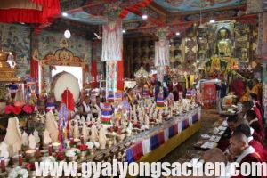 ཕྱི་ལོ་ ༢༠༢༠ ལོའི་ཟླ་ ༠༢ ཚེས་ ༢༤ ཉིན་དབུ་འཛུགས་ཏེ་༸སྐྱབས་མགོན་༸གོང་མ་ཁྲི་འཛིན་རིན་པོ་ཆེ་དབུ་བཞུགས་གནང་ནས་ཚེ་ལྷ་རྣམ་གསུམ་གྱི་ནང་ཚན་ལྷག་པའི་ལྷ་མཆོག་ལྷ་མོ་རྣམ་རྒྱལ་མའི་སྟོང་མཆོད་ཀྱི་སྒོ་ནས་ཉིན་ལྔའི་སྒྲུབ་ཞགས་སྔོན་དུ་སོང་ནས་དེ་རིང་ཕྱི་ཚེས་ ༢༨ ཉིན་༸སྐྱབས་མགོན་༸གོང་མ་ཁྲི་ཆེན་རྡོ་རྗེ་འཆང་ཆེན་པོ་མཆོག་ལ་བརྟན་བཞུགས་རྒྱས་པ་ཞིག་འབུལ་གནང་སོང་།