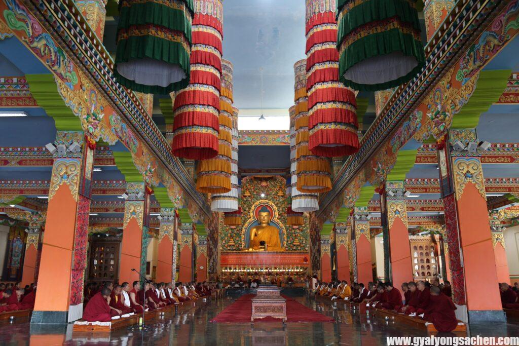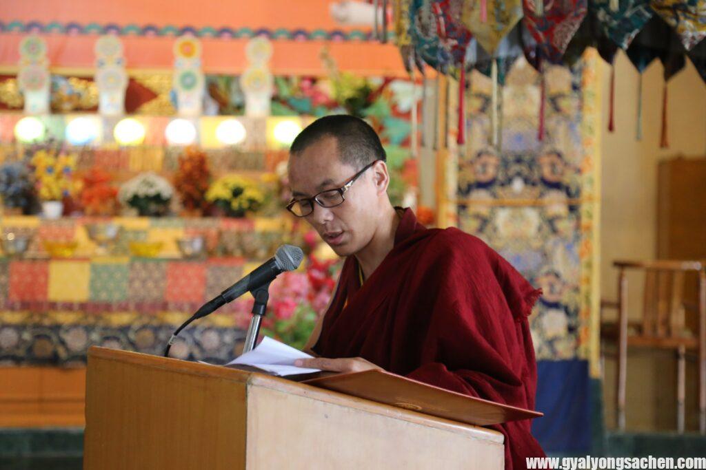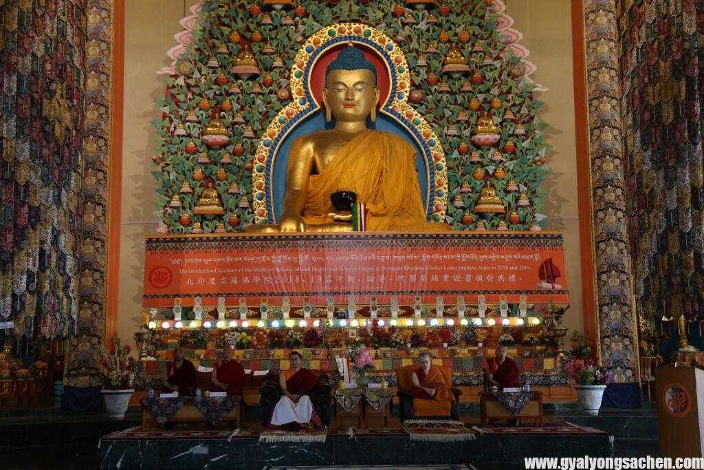 མཛད་སྒོའི་ཐོག་༸དཔལ་ས་སྐྱའི་འཁོན་གདུང་སྐྱབས་མཆོག་ཨ་བི་ཀྲྀ་ཏ་བཛྲ་རིན་པོ་ཆེ་མཆོག་དང་། ༸འཁོན་གདུང་ཤཀྱཱའི་དགེ་སློང་འཇམ་དབྱངས་ཀུན་དགའ་ཐུབ་བསྟན་འཇིགས་མེད་རིན་པོ་ཆེ་རྣམ་པ་གཉིས་དབུ་བཞུགས་ཆིབས་སྒྱུར་བཀའ་དྲིན་བསྐྱངས་པ་དང། བཤད་གྲྭའི་མཁན་ཆེན་རིན་ཆེན་མཆོག མཁན་ཆེན་བསམ་གྲུབ་མཆོག ལས་ཐོག་མཁན་པོ་འཇམ་དབྱངས་ཆོས་འཕེལ་མཆོག་གིས་དབུས་པའི་བཤད་གྲྭའི་མཁན་པོ་དགེ་རྒན་རྣམ་པ། བཤད་གྲྭའི་མཐོ་རིམ་རིག་གནས་སྡེ་ཚན་གྱི་གཙུག་ལག་རབ་འབྱམས་པའི་ངེས་སྟོན་པ་སློབ་དཔོན་ཆེན་མོ་སྤྲེལ་ནག་པ་བློ་གྲོས་དཔལ་བཟང་མཆོག་གིས་དབུས་པའི་མཐོ་རིམ་རིག་གནས་ཀྱི་དགེ་རྒན་རྣམ་པ། གཞི་རིམ་སློབ་གྲྭ་ཀནིཥྑའི་སློབ་སྤྱི་བསྟན་འཛིན་དབྱངས་འཛོམས་ཀྱིས་དབུས་པའི་གཞི་རིམ་སློབ་གྲྭའི་དགེ་ལས་རྣམ་པ་བཅས་ཀྱི་དབུས་རྫོང་སར་བཤད་གྲྭའི་འདུས་མང་ཡོངས་གཙུག་ལག་ཁང་སྐལ་བཟང་ཆོས་ཀྱི་འབྱུང་གནས་སུ་ཚང་འཛོམས་ཐོག ཐོག་མར་༸སྐྱབས་རྗེ་འཁོན་གདུང་ཨ་བི་ཀྲྀ་ཏ་བཛྲ་རིན་པོ་ཆེ་མཆོག་གིས་སྣང་གསལ་མར་མེ་ཞལ་འབྱེད་གནང་། དེ་རྗེས་བཤད་གྲྭའི་ཡིག་རྒྱུགས་ཚོགས་ཆུང་གི་ཡིག་རྒྱུགས་དོ་དམ་པ་མཁན་པོ་སྒྲོལ་མ་དར་རྒྱས་ལགས་ཀྱིས་འཚམས་འདྲི་དང་བཅས་སྤྱི་ལོ་ ༢༠༡༨ དང་ ༢༠༡༩ ལོ་སོ་སོར་དབུ་མ་དང་། བསྟན་བཅོས། སློབ་དཔོན་བཅས་ཀྱི་བསླབ་པ་ཐར་སོན་པ་རྣམས་ཀྱི་མཚན་ཐོ་ཀློག་རིམ་བཞིན། ༸སྐྱབས་རྗེ་འཁོན་གདུང་ཨ་བི་ཀྲྀ་ཏ་བཛྲ་རིན་པོ་ཆེ་མཆོག་གིས་ཕྱག་འཁྱེར་ཁག་བསྩལ་གནང་མཛད།