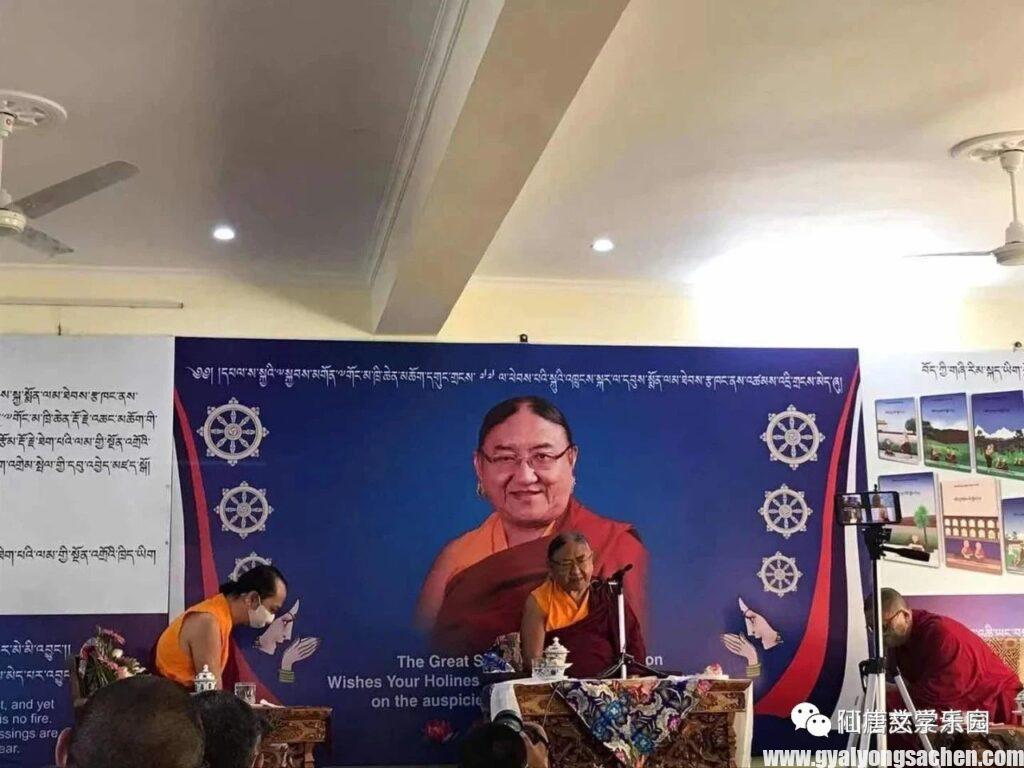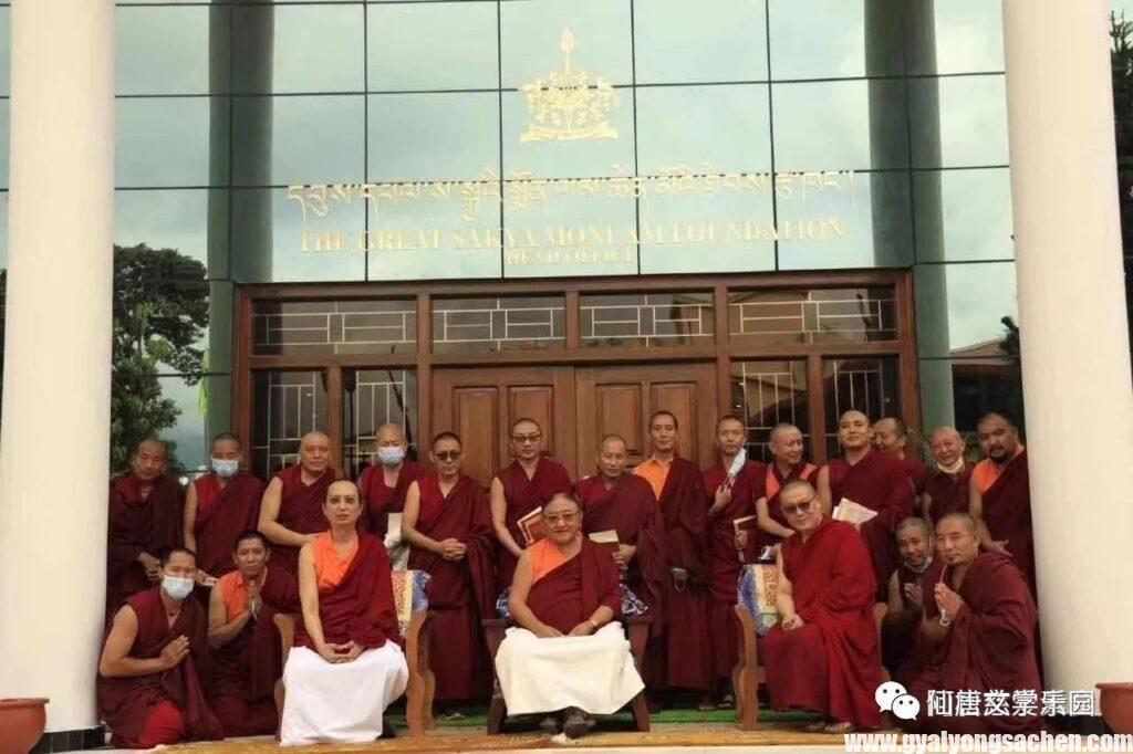 དེ་ནས་དྲིན་ཆེན་རྩ་བའི་བླ་མས་ཆོས་སྒར་གྱི་གྲྭ་ཤག་གསར་པའི་དབུ་འབྱེད་དང་ཉིན་རྒྱབ་དབུས་ས་སྐྱ་སྨོན་ལམ་ཚོགས་པའི་ལས་ཁུངས་སོགས་ཡོད་པའི་ཁང་པ་གསར་པ་དབུ་འབྱེད་དང་འབྲེལ་མགོན་པོ་གང་གི་མཛད་པའི་སྔོན་འགྲོའི་སྐོར་ཕྱག་དེབ་དང་། ས་སྐྱའི་གཞི་རིམ་འཛིན་གྲྭ་དང་པོ་ནས་བརྒྱད་པའི་བར་གྱི་སློབ་དེབ་དབུ་འབྱེད་གནང་། སྐབས་དེར་༸གོང་མ་ཁྲི་འཛིན་ཞེ་གཉིས་པ་མཆོག་དང་ངོར་ཁྲི་པ་ཐར་རྩེ་མཁན་རིན་པོ་ཆེ་མཆོག་ཀྱང་ལྷན་ཕེབས་མཛད། དེ་ནས་བཙུན་དགོན་རིན་ཆེན་ཆོས་གླིང་དུ་ཆིབས་བསྒྱུར་བསྐྱངས་འདུག །