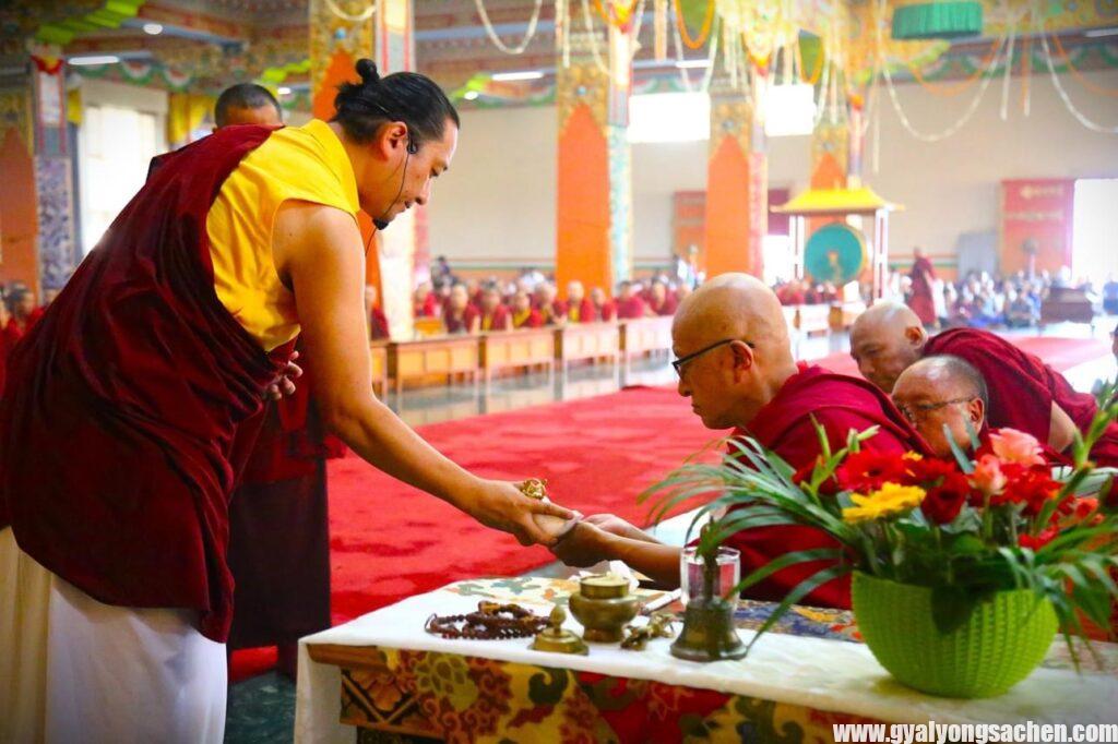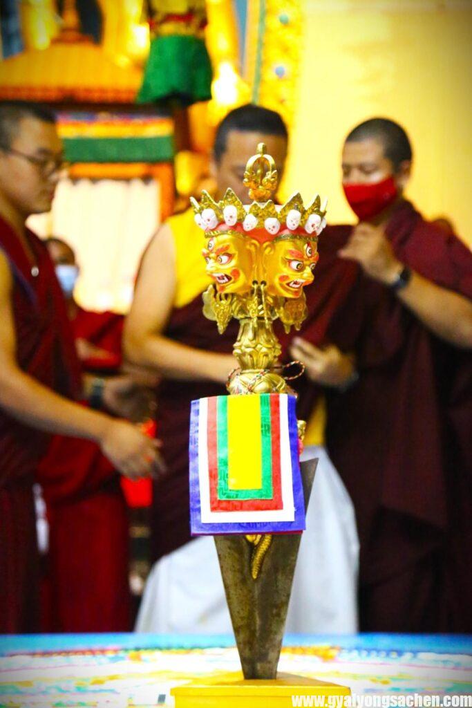 སྤྱི་ཚེས ༢༣་དུས་བཟང་ཁྱད་པར་ཅན་གྱི་ཉིན་མོར་རྗེ་བཙུན་འཇམ་དཔལ་དབྱངས་དངོས་མི་ཡི་གཟུགས་སུ་རྣམ་པར་རོལ་པ་དཔལ་བརྩེ་བ་ཆེན་པོའི་རིང་ལུགས་འཛིན་པ་ཡོངས་ཀྱི་ཁྱུ་མཆོག༸དཔལ་ས་སྐྱའི་༸སྐྱབས་མགོན་གོང་མ་ཁྲི་འཛིན་ཞེ་གསུམ་པ་ཛྙ་ན་བཛྲ་རིན་པོ་ཆེ་མཆོག་ལ་རིང་ནས་གསོལ་བ་བཏབ་པ་ལྟར་དེ་རིང་ས་གནས་འདི་གའི་ལྷ་སྡེ་མི་སྡེ་ཡོངས་ནས་ཕེབས་བསུ་ཤིན་ཏུ་རྒྱས་པ་དང་བཅས་འཕགས་ཡུལ་རྫོང་སར་བཤད་གྲྭར་ཞབས་སོར་བཀའ་དྲིན་བསྐྱངས་གནང་བ་དང་། ཁ་རྩང་་ཡར་ངོའི་ཚེས་བཅུ་གུ་རུའི་དུས་ཆེན་ཉིན། ༸སྐྱབས་མགོན་གོང་མ་ཛྙ་ན་བཛྲ་རིན་པོ་ཆེ་མཆོག་གིས་འཕགས་ཡུལ་རྫོང་སར་བཤད་གྲྭར་དད་ལྡན་སྟོང་ཚོ་མང་པོ་ལ་རྡོ་རྗེ་ཕུར་པའི་བཀའ་དབང་བསྩལ་གནང་བ་དང་། དགོངས་དྲོར་ཆོས་ཀྱི་མཛད་པ་རྒྱ་ཆེན་པོ་བསྐྱངས་པའི་དགའ་སྟོན་དུ་ས་གནས་འདི་གའི་གཞིས་ཆགས་དང་སློབ་གྲྭ་རྣམས་ནས་གཞས་དང་ཞབས་བྲོའི་མཆོད་སྤྲིན་གནང་འདུག