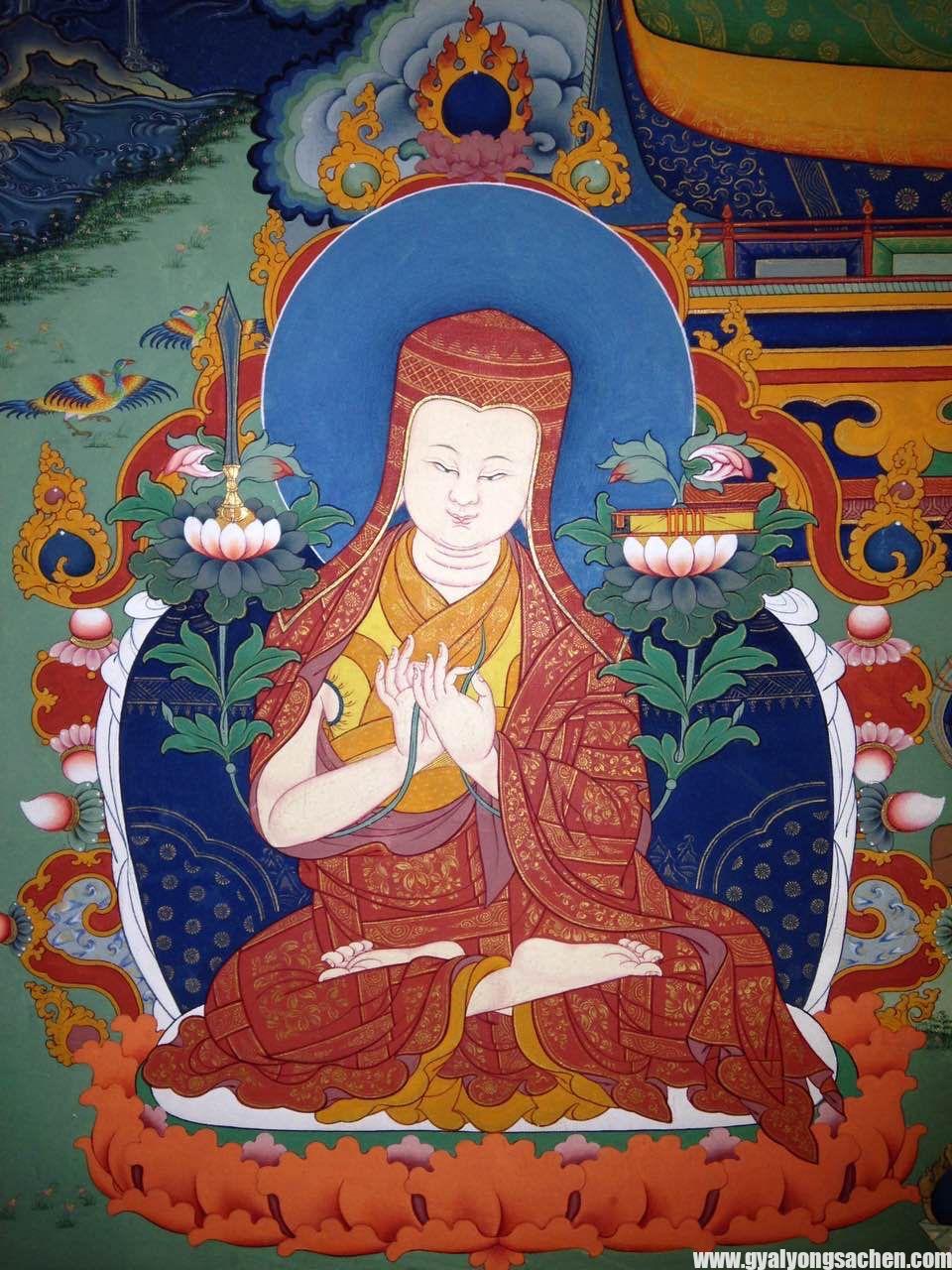 དེ་བཞིན་ཆོས་རྗེ་དགུང་ལོ་ ༢༣ ལོར་ཆུ་མིག་རིང་མོར་ཁ་ཆེ་པཎ་ཆེན་ཤཱཀྱ་ཤྲཱི་བྷ་དྲ་སྐུ་འཁོར་ཐོག་མར་མཇལ་བ་ནས་བཟུང་། སཾ་སྐྲྀ་ཏའི་སྐད་ཡིག་དང་། ནང་དོན་རིག་པ་དང་། སྒྲ་རིག་པ། ཚད་མ་རིག་པ་སོགས་བཅུ་ཕྲག་རིག་པའི་གནས་མཐའ་དག་ལ་གསན་བསམ་རྒྱ་ཆེར་མཛད་དེ་པཎྜི་ཏའི་མཚན་གསོལ་ཡང་གནང་སྟེ། གངས་རིའི་ལྗོངས་སུ་ལྔ་རིག་སྨྲ་བའི་དབང་པོའི་མཚན་གྱི་ཅོད་ཅན་ཐོག་མར་བཞེས། དགུང་ལོ་ ༢༧ པར་ཉང་སྨད་རྒྱན་གོང་དུ་ཁ་ཆེ་པཎ་ཆེན་ཤཱཀྱ་ཤྲཱི་བྷ་དྲའི་མདུན་དུ་བསྙེན་རྫོགས་ཀྱི་སྡོམ་པ་བཞེས་ཏེ། ཀུན་དགའ་རྒྱལ་མཚན་དཔལ་བཟང་པོ་ཞེས་མཚན་གསོལ་ཞིང་ངུར་སྨྲིག་འཆང་བ་ཀུན་གྱི་གཙུག་རྒྱན་དུ་གྱུར། དེས་ན་ཆོས་རྗེ་ས་སྐྱ་པཎྜི་ཏ་ཀུན་དགའ་རྒྱལ་མཚན་དཔལ་བཟང་པོ་ཞེས་ཡོངས་སུ་གྲགས། དགུང་ལོ་སོ་ལྔ་བཞེས་པར་མེ་བྱི་ཕྱི་ལོ་ ༡༢༡༦ ལོར་དཔལ་ལྡན་ས་སྐྱའི་ཆོས་ཁྲིར་མངའ་གསོལ་ཞིང་། མཁས་པའི་བྱ་བ་ལ་སོགས་པའི་དམ་པའི་ངང་ཚུལ་དགུ་ཡིས་བརྒྱན་ཞིང་སྙན་པའི་གྲགས་པ་ས་ཕྱོགས་གང་སར་ཁྱབ་སྟེ་བསྟན་འགྲོའི་དོན་རྒྱ་ཆེར་མཛད།
