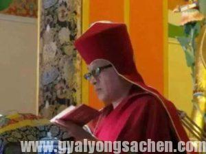 ༄། །སངས་རྒྱས་ཀྱི་བསྟན་པ་སྤྱི་ལ་མས་བུ་ལ་བསྐྱངས་བའི་བྱམས་བརྩེའི་རང་བཞིན་ལྡན་ཅིང། ལྷག་པའི་སེམས་བསྐྱེད་མཚུངས་པ་མི་མངའ་བ། ༧སྐྱབས་མཆོག་རྫོང་སར་མཁྱེན་བརྩེ་རིན་པོ་ཆེ་མཆོག་གིས། བུང་བ་མེ་ཏོག་གི་རྩི་དང་རི་དྭགས་སྒྲ་ལ་ཆགས་པའི་སྣང་ཚུལ་ལྟར། ཕྱི་རྒྱལ་ཡུལ་གྲུ་གང་ས་ནས་ཕྱོགས་གཅིག་ཏུ་འདུས་པའི་ནང་ཆོས་དོན་གཉེར་ཅན་སྟོང་ཕྲག་བརྒལ་བར། ཉེ་ལམ་བལ་ཡུལ་དུ་སྟོན་པས་ཆོས་ཕུང་བརྒྱད་ཁྲི་གནང་བའི་ནང་ནས་ངེས་དོན་གྱི་མདོ་ཤེས་རབ་སྙིང་པོ་ལས་བརྩམས་ཏེ་ཆོས་ཁྲིད་ཟབ་མོ་གནང་བཞིན་པའི་སྐབས་ཤིག་ན། ” རྒྱ་ལ་གལ་ཏེ་ཆོས་རྒྱལ་མྱ་ངན་མེད་འཛམ་བུ་གླིང་འདིར་ཕེབས་མེད་ན། ནང་ཆོས་ནི་ཆེས་སྔ་མོ་ཞིག་ནས་ཞིང་འདི་ནས་ཕྱི་རོལ་ཏུ་གྱུར་ཚར་ཅིང། ད་ཆ་ང་ཚོས་དྲན་གསོ་ཙམ་བྱེད་པའི་ཡུལ་ཞིག་དང། སྔོན་དེ་ལྟར་བྱུང་ཞེས་ལོ་རྒྱུས་ཤོད་པའི་བརྗོད་བྱ་ཙམ་དུ་གྱུར་ཟིན་ངེས། ལྷག་དོན་དུ་ཁོང་མེད་ན་ནང་ཆོས་ནི་ཆེས་སྔ་མོ་ས་གནས་ག་གེ་མོ་ཞིག་ཏུ། སྟོན་པ་ཆེ་གེ་མོ་ཞེས་པ་ཞིག་བྱོན་ནས། ཆོས་ག་གེ་མོ་ཞིག་གསུངས་ཡོད་ཚུལ་འདུག་ཟེར་བ་ལྟ་བུ་ཚིག་གི་འབྲུ་དང། བརྗོད་པའི་ངག་ཙམ་གྱི་གནས་སྟངས་སུ་གྱུར་ཟིན་ངེས། དེས་ན་སངས་རྒྱས་ཀྱི་བསྟན་པ་ད་ལྟའི་དུས་ཚོད་བར་གནས་ཤིང་། ང་ཚོའི་དད་པའི་ཡུལ་དང་བསོད་ནམས་ཀྱི་བགོ་སྐལ་དུ་བཞུགས་ཡོད་པ་འདི་ནི་ཆོས་རྒྱལ་མྱ་ངན་མེད་ཀྱི་སྐུ་དྲིན་ཉག་ཅིག་ཡིན་པས། ཁོང་ལ་བཀྲིན་རྗེས་དྲན་གྱི་ཚུལ་དུ་གཙུག་ལག་ཁང་དུ་ཁོང་གི་འདྲ་སྐུ་བཞེངས་པ་དང། དགོན་པ་དང་བཤད་གྲ་ཁག་ཏུ་ཁོང་གི་མཛད་ཕྲིན་སྐོར་སློབ་སྦྱོང་བྱེད་པ་དང། བགྲོ་གླེང་བྱེད་པའི་གོམས་གཤིས་རྒྱུན་འཇགས་བྱུང་ན་ཅི་མ་རུང་” ཅེས་མ་རིག་པའི་གཉིད་ལས་སད་པའི་ཅོང་བརྡ་ལྟ་བུའི་བཀའ་སློབ་དོན་སྙིང་ལྡན་པ་ཞིག་གནང་སོང། གསུང་དེ་ངའི་རྣ་བའི་བུ་གར་ཞུགས་མ་ཐག་གཞན་གྱིས་ག་རེ་བྱས་ཀྱང་རུང་མ་བྱས་ཀྱང་རུང། དེར་རེ་བ་བྱས་ཏེ་མ་སྒུགས་པར། རང་ངོས་ནས་གོ་སྐབས་འཚོལ་ཏེ་ས་དམིགས་གལ་ཆེ་ཞིག་ཏུ་ཆོས་རྒྱལ་མྱ་ངན་མེད་ཀྱི་འདྲ་སྐུ་ཞིག་བཞེངས་རྒྱུ་ཆོད་སེམས་ཞིག་འབུལ་རྒྱུར་བློ་ཁོག་དང་གདེངས་སྤོབས་ཤིག་ཐོབ། འདི་ལས་བྱུང་བའི་དགེ་རྩ་གང་མཆིས་སངས་རྒྱས་ཀྱི་ངེས་དོན་གསུང་ཤེས་རབ་སྙིང་པོ་ལ་ཉམས་ལེན་བྱས་ཀྱང་རུང། མ་བྱས་ཀྱང་རུང་དགའ་མོས་བྱེད་མཁན་ཇེ་མང་དུ་ཅིས་ཀྱང་འགྲོ་བར་ཤོག་ཅེས་བསྔོ་བ་དང་སྨོན་ལམ་བྱེད། ཟབ་ཆོས་ཐོབ་པའི་འབུལ་བའི་ཚུལ་དུ་དགྱེས་བཞེས་ཡོང་བ་མཁྱེན།