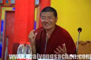 གོང་དུ་དྲང་པའི་མདོ་དང་། སོར་མདོ་ལས། ང་ནི་མྱ་ངན་འདས་གྱུར་ན། །འདི་ནི་ཁྱོད་ཀྱི་སྟོན་པའོ་ཞེས། །རང་བྱུང་ཉིད་ཀྱིས་གུས་བཅས་པར། །ནན་གཏན་དགེ་འདུན་ཚོགས་དབུས་བསྟོད། །སོགས་སངས་རྒྱས་ཉིད་ཀྱི་གསུང་རབ་ལ་སངས་རྒྱས་དང་མཚུངས་པའི་དད་གུས་དགོས་པ་དང་། རྫོགས་པའི་སངས་རྒྱས་མྱ་ངན་ལས་འདས་ཟིན་པའི་དུས་ཀྱི་རྒྱལ་ཚབ་དངོས་ཡིན་པ་ལྟ་བུར་གསུངས་པའི་དོན་ནི་ནང་དོན་ལ་མ་ལྟོས་པར་ཡིག་འབྲུ་རྐྱང་པའི་སྟེང་ནས་གོ་བ་གཏན་ནས་ལེན་མི་རུང་། འོ་ན་ཇི་ལྟར་ཞེ་ན་ནང་དོན་དང་ཡི་གེའི་བྱེད་ལས་ཀྱི་ཆ་ནས་གཙོ་བོར་གོ་དགོས་པ་སྟེ། དཔེར་ན་སྡིག་པ་ཅི་ཡང་མི་བྱ་ཞིང་། །དགེ་བ་ཕུན་སུམ་ཚོགས་པར་བྱ། །རང་གི་སེམས་ནི་ཡོངས་སུ་འདུལ། །འདི་ནི་སངས་རྒྱས་བསྟན་པ་ཡིན། །ཞེས་པ་ལྟ་བུ་ལ་མཚོན་ན། སྡིག་པ་མི་དགེ་བ་བཅུ་བྱེད་མི་རུང་བ་དང་། །དགེ་བ་བཅུ་ཕུན་སུམ་ཚོགས་པ་བསྒྲུབ། །རང་སེམས་ཆོས་ཀྱིས་འདུལ་དགོས་པའི་བསླབ་བྱ་འདི་ལ། ད་ལྟ་སངས་རྒྱས་དངོས་ཀྱི་ཞལ་ནས་གསུང་ཤིང་རང་གི་རྣ་བས་མངོན་སུམ་དུ་ཐོས་པ་ལྟ་བུའི་རྩིས་མཐོང་བྱེད་དགོས་ཤིང་། དེ་བཞིན་དུ་སངས་རྒྱས་ཀྱི་བཀའ་དང་། ཆོས་ཀྱི་ནང་དོན་སྟོན་པའི་དགོངས་འགྲེལ་གྱི་བསྟན་བཅོས་དང་བཅས་པ་ལ་དེ་དང་དེ་ལྟ་བུའི་དད་གུས་དང་རྩིས་མཐོང་བྱས་ནས་རང་ཉིད་ཀྱི་བླང་དོར་ཀུན་རྒྱལ་བའི་བཀའ་དང་མི་འགལ་བ་ཞིག་བྱེད་ཐུབ་ན། སངས་རྒྱས་ལ་གུས་པ་བྱས་པ་དང་ཁྱད་མེད་པ་དང་། གསུང་རབ་དག་གིས་ཀྱང་སངས་རྒྱས་ཀྱི་མཛད་པ་དངོས་དེ་བསྒྲུབ་ཐུབ་བཞིན་ཡོད་པའི་སྟབས་ཀྱིས་རྫོགས་པའི་སངས་རྒྱས་ཀྱི་རྒྱལ་ཚབ་དང་། སྐྱབས་འགྲོའི་བསླབ་བྱའི་སྐབས་སུ་དད་གུས་དགོས་པའི་ཚུལ་དེ་གསུང་པ་ཡིན། དེའི་ཤུགས་ལ་འགྲེང་འཆག་ཉལ་འདུག་ལྟ་བུའི་བརྗོད་བྱ་སྤྱིར་བཏང་བ་སྟོན་པའི་ཡིག་ཚོགས་དང་། ནང་དོན་ཕྱིན་ཅི་ལོག་པར་སྟོན་པའི་ཡི་གེ་རྣམས་ལ་ནི་སངས་རྒྱས་དངོས་ཀྱི་རྒྱལ་ཚབ་དང་། ཆོས་དཀོན་མཆོག་དངོས་ཀྱི་འདུ་ཤེས་བཞག་དགོས་དོན་གང་ཡང་མེད། དོན་འདི་དང་འབྲེལ་བའི་སྒྲུང་ཐུང་ཞིག་ཞུ་ན། སྐབས་ཞིག་ཁོ་བོ་གཞུང་གཉེར་སློབ་གྲྭའི་ཞིབ་འཇུག་སློབ་མ་ཞིག་དང་མཉམ་དུ་སྤང་ཐོག་ཏུ་ཕྱིན་པ་ཡིན། །ཁོང་གིས་དཔེ་དེབ་གཉིས་ལག་ཏུ་འཁུར་འདུག །སྤང་ཐོག་ཏུ་སླེབ་རྗེས་གཅིག་ང་ལ་སྤྲད་དེ་ས་རློན་ཐོག་ཡུན་རིང་བསྡད་ན་ནད་བསླང་གི་རེད། འདིའི་ཐོག་ཏུ་བཞུགས་ཞེས་དཔེ་དེབ་དེ་སྤྲོད་བྱུང་། ངས་མི་དགོས་ང་རང་གཞན་ཞིག་གི་ཐོག་སྡོད་ཆོག་ཅེས་ལབ་པར། དེ་འཕྲལ་ཁོ་རང་དཔེ་དེབ་དེའི་ཐོག་ཏུ་བསྡད་སོང་། ངས་དཔེ་ཆ་དེ་ཆོས་དང་འབྲེལ་བ་ཡོད་མཁན་ཞིག་ཡིན་ན་དེ་ལྟར་སྡོད་རུང་གི་མ་རེད་ཅེས་བཤད་པར་ཁོས་སྐྱོན་མ་རེད་འདི་རྒྱ་ཡིག་རེད་ཅེས་བཤད་བྱུང་། དོན་འདིས་ཅི་ཞིག་མཚོན་བཞིན་ཡོད་ཅེ་ན་ཁ