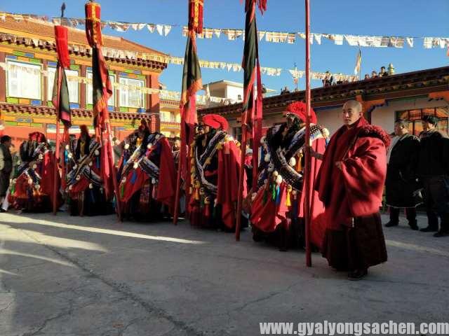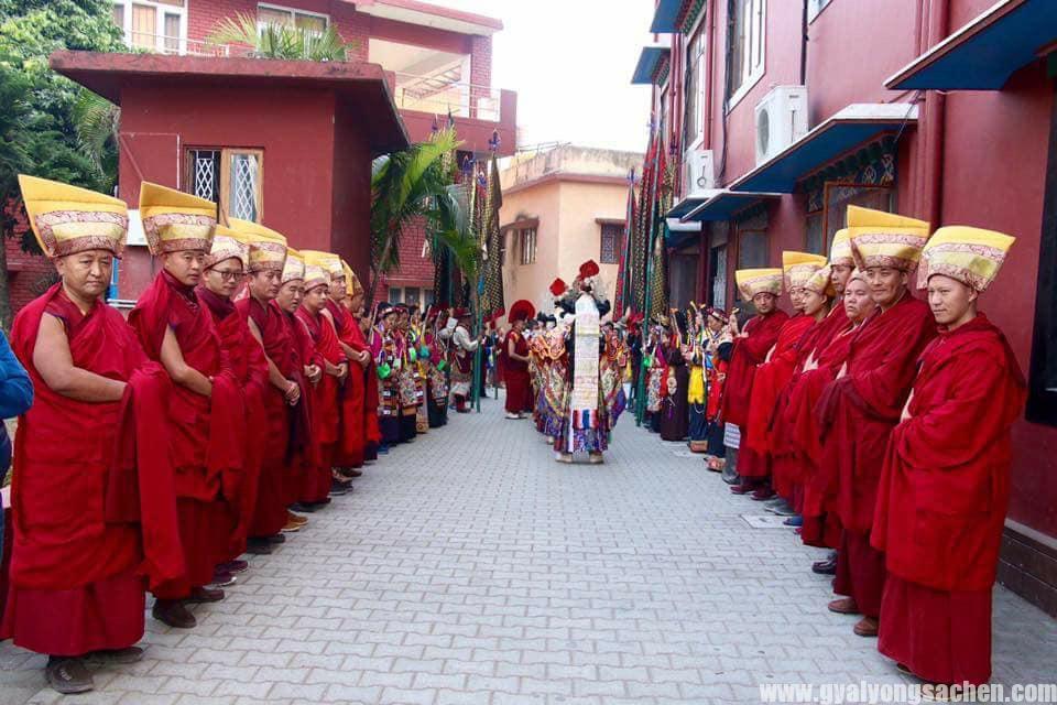 དཔལ་ས་སྐྱའི་ས་མདོས་ཆེན་མོ་འདི་ནི། དུས་རབས་བཅུ་གཅིག་པའི་ནང་ས་ཆེན་ཀུན་དགའ་སྙིང་པོའི་སྐུ་དུས་སུ་ཐོག་གསར་གཏོད་བྱུང་ཞིང་། དེ་རྗེས་ས་སྐྱ་གོང་མ་རིམ་བྱོན་གྱིས་རིམ་པར་རྒྱུད་འཛིན་དང་འཕེལ་རྒྱས་བྱུང་བ་ཡིན། ལྷག་པར་དཔལ་ས་སྐྱ་པའི་ཁྲི་རབས་ཉེར་གསུམ་པ་སྔགས་འཆང་ངག་དབང་ཀུན་དགའ་རིན་ཆེན་གྱི་སྐུ་དུས་སུ་ཕྱོགས་ཡོངས་ཀྱི་བཀོད་སྒྲིག་དང་འཆམ་རིམ་སོགས་ལ་འཕོ་འགྱུར་ངེས་ཅན་བྱུང་བ་ནས་ད་ལྟ་བར་མ་ཉམས་པར་གནས་ཡོད། ཁྱད་པར་དུ་དཔལ་ལྡན་ས་སྐྱ་པའི་ཁྲི་པ་གསར་པ་ཕེབས་པའི་དུས་སྟོན་ཆ་ཤས་དུ་སྔོན་དུས་ནས་མདོས་ཆེན་ཟབ་མ་ཚོགས་སྲོལ་ཡོད་པ་ལྟར་འདི་ལོར་དཔལ་ས་སྐྱའི་༧ སྐྱབས་མགོན་༧ གོང་མ་ཁྲི་འཛིན་རིན་པོ་ཆེ་མཆོག་༧ དཔལ་ལྡན་ས་སྐྱ་པའི་ཁྲི་པ་གསར་པ་ཕེབས་པའི་དུས་སྟོན་དུ་བྱེས་ཀྱི་གདན་ས་དཔལ་ས་སྐྱའི་ཆོས་སྒར་དུ་ད་རིང་བོད་ཟླ་བཅུ་གཅིག་པའི་ཚེས་ཉེར་དགུ་ཉིན་༧ སྐྱབས་མགོན་༧ གོང་མ་ཁྲི་འཛིན་རིན་པོ་ཆེ་མཆོག་རྡོ་རྗེ་སློབ་དཔོན་གྱི་ངོ་བོ་རུ་ཚོགས་མགོན་དུ་དབུ་བཞུགས་ཐོག་མདོས་ཆེན་ཟབ་མ་ཚོགས་བཞིན་པའི་རྣམ་པ། ས་མདོས་ཆེན་མོ་འདི་ནི་བསྟན་པ་སྤྱི་ལ་བར་དུ་གཅོད་པའི་རྐྱེན་ངན་པ་རྣམས་བསལ་བར་བྱ་བའི་སྒྲུབ་ཐབས་ཐུན་མོང་མ་ཡིན་པ་ཞིག་ཡིན་མཆིས་སྔོན་དུས་ས་སྐྱ་གོང་མ་རིམ་བྱོན་གྱིས་སྒྲུབ་མཆོད་འདིར་གཟིགས་སྣང་ཆེན་པོས་ཚོགས་ཀྱི་རྡོ་རྗེ་སློབ་དཔོན་མཛད་དེ་བསྟན་པའི་བར་ཆད་བཟློག་པར་མཛད་སྲོལ་ཡོད་པ་ཡིན་པར་ད་ལྟའི་བར་དུ་མི་ཉམས་པར་གནས་པ་ལགས་སོ།