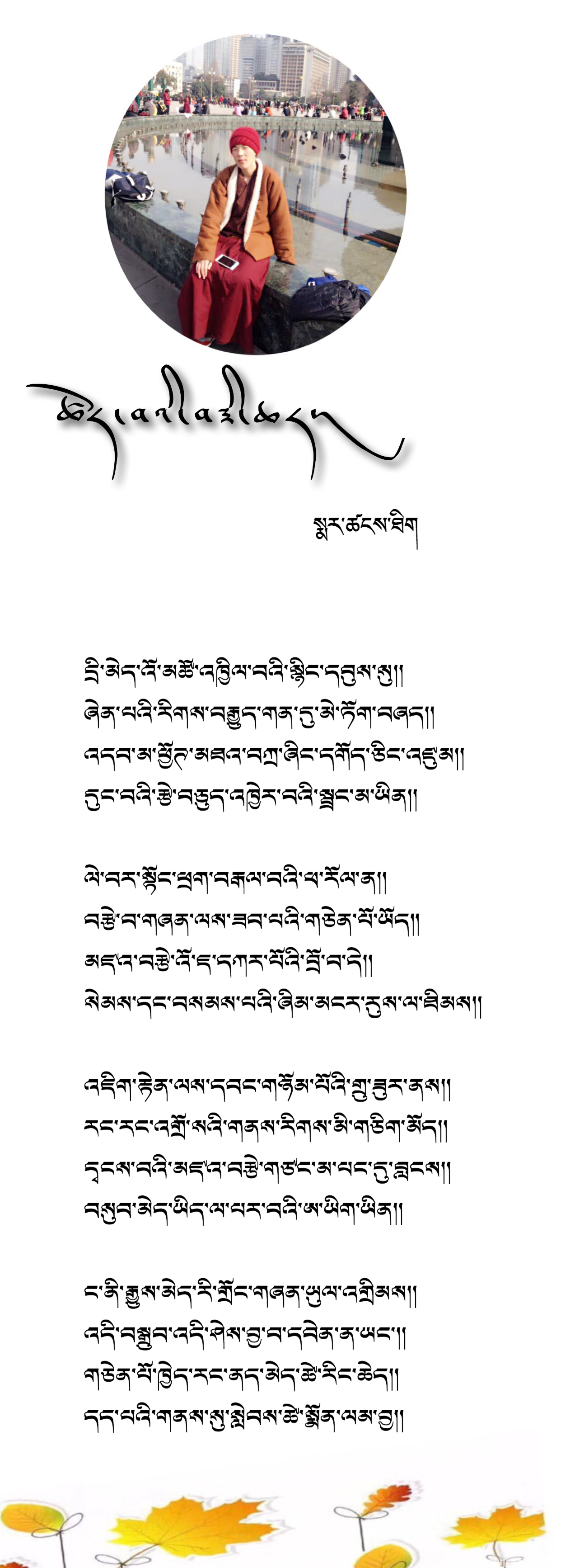 འདི་ནི་ཕ་ཡུལ་གངས་ལྗོངས་སུ་ཡོད་པའི་སྲས་མོ་སྨར་ཚངས་ཐིག་གིས་བདག་ལ་བྲིས་པའི་ལག་རྟགས་ཞིག་ཡིན། །
