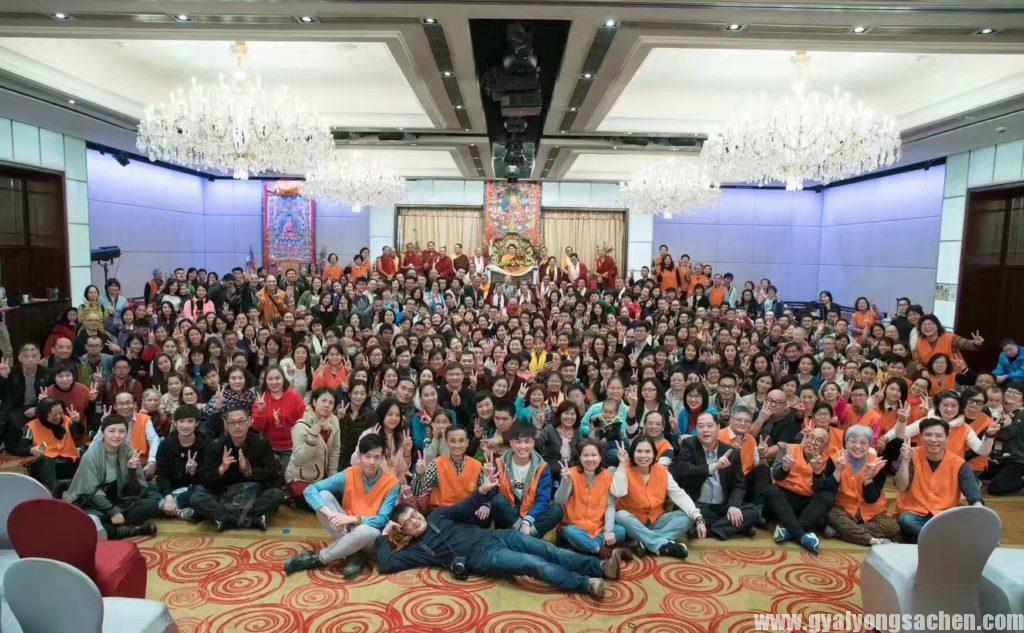 ཕྱི་ལོ་ ༢༠༡༨ ཟླ་ ༡ ཚེས་ ༡༩ ཉིན་ནས་བཟུང་དཔལ་ས་སྐྱའི་༸སྐྱབས་མགོན་ཕུན་ཚོགས་ཕོ་བྲང་གི་འཁོན་གདུང་ཨ་བྷི་ཀྲྀ་ཏ་བཛྲ་རིན་པོ་ཆེ་མཆོག ཧོང་ཀོང་མཚོ་གླིང་ཡུལ་དུ་ཆོས་ཕྱོགས་ཀྱི་མཛད་འཕྲིན་སྐྱོང་བཞིན་པ་དང་། ཆོས་ཞུགས་པ་ཆོས་ཚོགས་ཁག་གི་མཁན་པོ་དང་དགེ་འདུན་པ་སུམ་ཅུ་ལ་ཉེ་བ་དང་དད་ལྡན་རྒྱ་རིགས་སྟོང་ལས་བརྒལ་བ་བཅས་མཉམ་ཞུགས་གནང་འདུག