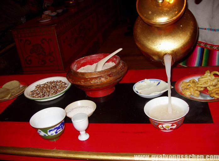 འོ་མ་ནི་གཙང་བཟོ་དང་འཇམ་བཟོ་ལ་ཧ་ཅང་བཟང་བས། གྲོ་ཆག་ཁེམ་བུ་ ༣ དང་འོ་མ་ཕོར་བ་གང་བསྲེས་པའི་ལྡེ་གུ་གྲ་སྒྲིག་བྱས་ཏེ་གཟུགས་པོ་དང་གདོང་པགས་བདར་ཆོག