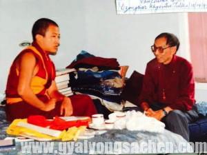 དེའི་རིང་ང་ཚོའི་ཁོང་གི་ས་ནས་སི་ཏུའི་འགྲེལ་ཆེན་གྱི་བསྡུས་དོན་ལྟ་བུར་སོང་བའི་སུམ་འགྲེལ་ལྷག་བསམ་དཀར་པོ་དང་། སྙན་ངག་གི་ལེའུ་གཉིས་པའི་གལ་ཆེའི་དཔེ་བརྗོད་སོགས་རིག་གནས་ཀྱི་སྐོར་འགའ་རེར་སློབ་གཉེར་བྱ་རྒྱུའི་གོ་སྐབས་བྱུང་བ་རེད། སྐབས་དེར་ཁོང་གིས་ང་ཚོར་རྩོམ་ཡིག་སྤེལ་སྟངས་ཀྱི་མིག་དཔེའི་ཆེད་ས་སྐྱ་མཐོ་སློབ་ལ་བསྔགས་པའི་ཀ་ཕྲེང་ཞིག་ཀྱང་མཛད་དེ་ཚོགས་སུ་བཀྲམས་པ་ངས་གསལ་པོར་དྲན་གྱི་འདུག ངས་ཀྱང་སྙན་ངག་སློབ་པའི་གོ་སྐབས་ཤིག་ལ་བརྩིས་ཏེ་ཆོས་རྗེ་པཎ་ལ་སྦྱར་བའི་དཔེ་རྒྱན་དང་། རྗེ་ཙོང་ཁ་པར་སྦྱར་བའི་གཟུགས་རྒྱན་གྱི་དཔེ་བརྗོད་ཆ་ཚང་རེ་ཡང་འབྲི་ཁུལ་བྱས་པ་ཡིན། སྐབས་དེར་རིན་པོ་ཆེ་དགུང་གྲངས་མཐོན་པོར་སོན་ཡོད་པས་ཁོང་གི་ས་ནས་དཔེ་ཁྲིད་ཞུས་རྗེས་ཁོང་གི་གཞུང་ལུགས་འཆད་སྟངས་ཀྱི་གསུང་སྒྲོས་དེ་རྩོམ་ཡིག་བྲིས་པ་ཇི་བཞིན་སྤུས་གཙང་ཞིག་མ་རེད་སྙམ་པ་ཡང་བྱུང་།