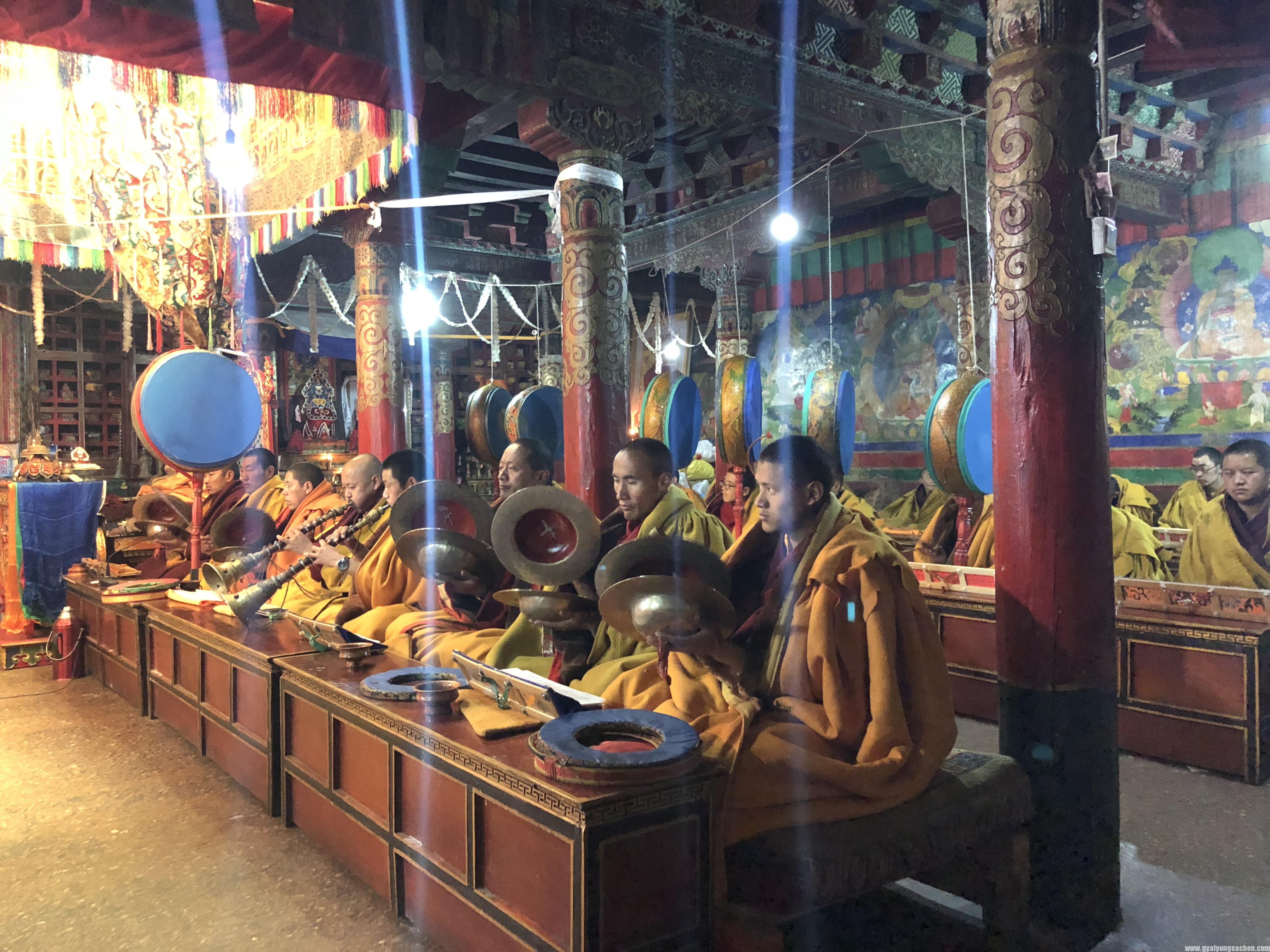 ཁ་རྩང་དེ་རིང་དཔལ་ལྡན་ས་སྐྱ་པ་ངོར་ཨེ་ཝཾ་ཆོས་སྡེ་གདན་ཆེན་མོའི་དཔོན་སློབ་དྲུག་ཅུ་ཞེས་པའི་སྒྲུབ་མཆོད་ཆེན་མོ་ཚོགས་དང་འཚོགས་མུས་རེད། དེ་ཡང་དཔལ་ལྡན་ས་སྐྱ་ངོར་ཨེ་ཝཾ་པའི་ལོ་རྒྱུས་ཐོག་གི་དཔོན་སློབ་དྲུག་ཅུ་ཞེས་པ་འདི་ནི་ཡི་དམ་དཔལ་རྡོ་རྗེ་འཇིགས་བྱེད་ལ་བསྟེན་པའི་སྒྲུབ་ཐབས་ཀྱི་ཐོག་ནས་གཏོར་འཕེན་གནང་ཚུལ་ཞིག་ཡིན་པ་དང་། སྒྲུབ་མཆོད་འདི་ནི་ངོར་ལུགས་ཐུན་མིན་གྱི་གདངས་དབྱངས་དང་། རྔ་རོལ། མཉམ་སྒྲོག་དུང་དང་རྒྱ་གླིང་། མདོར་ན་འབུད་རྡུང་དཀྲོལ་གསུམ་ཆ་ཚང་ངོར་ལུགས་ཐུན་མིན་གྱི་ཁྱད་ཆོས་ལྡན་པ་ཞིག་ཡིན་ལ། མཐུ་སྔགས་ཀྱི་ནུས་པ་ལ་བརྟེན་ནས་ཕ་རོལ་པོ་འཇོམས་པར་བྱེད་པའི་གཏོར་མའི་སྒྱུ་རྩལ་སོགས་ངོར་ལུགས་ཐུན་མིན་ཡིན་ཞིག དེ་བཞིན་སློབ་དཔོན་གྱིས་ཡི་དམ་ལྷ་དང་ཉེ་བར་འགྲོགས་པའི་བསྙེན་པ་ཁ་སྣོན་གཏོང་བ་དང་།