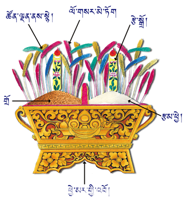 བོད་མིར་ལོ་གསར་དང་། དེ་མིན་གྱི་མཛད་སྒོ་ཆེ་ཁག་ལ་སྡེར་ཁ་སྒྲིག་པའི་སྲོལ་ཡོད་པ་མ་ཟད། མེད་དུ་མི་རུང་བའི་ཆ་རྐྱེན་ཞིག་ཀྱང་ཡིན། སྡེར་ཁ་ནི་གཟའ་བཅའ་ཙམ་ཞིག་མིན་པར་དཀོན་མཆོག་ལ་མཆོད་པ་དང་། རྟེན་འབྲེལ་མཚོན་བྱེད་ཀྱི་རྫས་གཙོ་བོ་ཞིག་ཡིན། སྡེར་ཁ་སྒྲིག་པའི་སྲོལ་དེ་ཇི་ལྟར་དར་བ་ཡིན་མིན་ཐད་ཡིག་རིགས་འཚོལ་ཞིབ་བྱས་ཀྱང་ལག་སོན་མ་བྱུང་བས་རྒན་རབས་ལ་བཅར་འདྲི་ཞུས་པ་ལྟར་ན། དེ་ཡང་ཐོག་མར་བོན་ཆོས་ནས་དར་བ་ཡིན་པའི་བཤད་སྲོལ་ཞིག་འདུག་པ་འདི་ལྟ་སྟེ། གནའ་རབས་བོན་གྱིས་སེམས་ཅན་བསད་དེ་དམར་མཆོད་འབུལ་བའི་སྲོལ་དེ་ནང་ཆོས་ཀྱིས་བསྒྱུར་བ་བཏང་ནས་སྡེར་ཁ་བསྒྲིགས་ཏེ་མཆོད་པ་འབུལ་བའི་སྲོལ་དེ་ནང་ཆོས་ཀྱིས་བསྒྱུར་བ་བཏང་ནས་སྡེར་ཁ་བསྒྲིགས་ཏེ་མཆོད་པ་ཕུལ་བའི་སྲོལ་དུ་འགྱུར་པ་རེད།