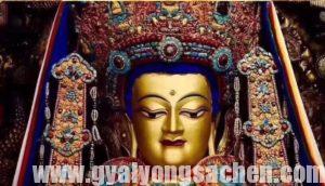 ཇོ་བོ་ཤཱཀྱ་མུ་ནེ་ཁོང་ནི་ས་ཕོ་སྤྲེལ་ལོར་སྟོན་པ་དགོངས་ལོ་ཞེ་གཅིག་ཏུ་ཕེབས་སྐབས་སུམ་ཅུ་རྩ་གསུམ་དུ་ཟླ་བ་གསུམ་དུ་དབྱར་གནས་པར་བཞུགས་མཛད་པས་དེའི་ཚེ་ལྷ་ཡི་དབང་པོ་བརྒྱ་བྱིན་གྱིས་སྦྱིན་བདག་མཛད་དེ་ལྷ་ཡི་རིན་པོ་ཆེ་རྣམ་པ་བཅུ་སོགས་ལས་གྲུབ་པའི་རྒྱུ་ཆ་སྟོན་པར་ཕུལ་ནས་སྟོན་པས་དེ་ཉིད་འཇིག་རྟེན་མི་ཡུལ་དུ་གདན་ཞུས་མཛད་པས་བཟོ་ཡི་རྒྱལ་པོ་བི་ཤྭ་ཀརྨས་དེ་ཉིད་དགུང་ལོ་བཅུ་གཉིས་པ་ཙམ་གྱི་སྐུར་བཞེངས་གནང་། སྐུ་རྟེན་འདི་ཉིད་ལྷ་ཡུལ་དང་རྒྱ་གར་ཨུ་རྒྱན་གྱི་ཡུལ་སོགས་ལ་ལོ་མང་དུ་བཞུགས་མཛད་ཅིང་སྟོན་པ་ཐུབ་པའི་དབང་པོ་ཁོང་གིས་སྐུ་འདི་ཉིད་ལ་རབ་གནས་ཀྱང་དངོས་སུ་མཛད། དེ་ནས་རིམ་བཞིན་རྒྱ་གར་གྱི་རྒྱལ་པོ་དྷརྨ་པ་ལས་རྒྱ་ནག་གི་རྒྱལ་པོ་སྲི་ཏ་བི་ཛ་ཡར་ལེགས་སྐྱེས་སུ་བསྐུར་བས་རྒྱ་ནག་ཏུ་ལོ་ལྔ་བརྒྱ་ཙམ་དུ་བཞུགས་མཛད་ལ་སྲོང་བཙན་གྱིས་རྒྱ་བཟའ་ཀོང་ཇོ་བོད་དུ་མནའ་མར་བསུས་པས་སྤྱི་ལོ་༦༣༦-ཙམ་གྱི་ལོ་ལ་རྒྱ་བཟའ་ཀོང་ཇོས་ཤིང་རྟའི་ཐོག་ཏུ་ཇོ་བོའི་སྐུ་འདི་བོད་དུ་སྤྱན་དྲངས་མཛད་ཅིང་རྒྱ་ཡུལ་ནས་ཤིང་བཟོ་དང་ལྷ་བཟོ་སོགས་མང་པོ་བོས་ནས་ར་མོ་ཆེའི་གཙུག་ལག་ཁང་གསར་བཞེངས་མཛད་ཅིང་ལྷ་ཁང་དེ་ཉིད་ཀྱི་སྒོ་ཤར་དུ་བསྟན་ནས་ནང་དུ་སྐུ་རྟེན་ལ་ཇོ་བོ་ཤཱཀྱ་མུ་ནེ་ཁོང་བཞག་མཛད། དེ་ནས་བོད་རྒྱལ་མོང་སྲོང་མང་བཙན་གྱི་སྐུ་དུས་སུ་རྒྱ་ནག་བོད་ལ་འདྲེན་ཟེར་བས་དམག་ཡོང་བར་དོགས་ནས་ཇོ་བོ་ཁོང་ར་མོ་ཆེ་ནས་ར་ས་འཕྲུལ་སྣང་གཙུག་ལག་ཁང་གི་ལྷོ་སྒོར་དུ་གདན་ཞུས་མཛད་དེ་སྒོ་ཁང་ནང་དུ་མི་མངོན་པར་སྦས་ཏེ་རྒྱ་རབས་གསུམ་གྱི་རིང་ལ་སྐུ་མི་མཐོང་བར་མཛད། དེ་ནས་རིམ་བཞིན་བོད་རྒྱལ་ཁྲི་གཙུག་བརྟན་མེས་ཨག་ཚོམ་དུ་གྲགས་པ་དེས་ལྗོངས་མོ་ཁྲི་བཙུན་མ་བླངས་དེ་ལ་སྲས་ལྗོངས་ཚ་ལྷ་དབོན་ཞེས་པ་ཞིག་འཁྲུངས་པས་དེ་ལ་རྒྱ་ནག་གི་རྒྱལ་པོ་ཛུང་ཛུང་རྒྱལ་པོའི་བུ་མོ་ཀྱིམ་ཤིང་ཀོང་ཇོ་བག་མར་བསུས་འོན་ཀྱང་རྒྱ་བུ་དེ་རྒྱ་མོ་ཀོང་ཇོ་མ་དེ་རྒྱ་བོད་གཉིས་ཀྱི་ས་མཚམས་ཙམ་དུ་བསླེབས་སྐབས་རྟས་བསྐྱུར་ཏེ་གྲོངས་རྒྱ་མོ་བོད་དུ་བསླེབས་ནས་ར་མོ་ཆེར་ཕྱིན་པས་དེར་ཇོ་བོ་མ་བཞུགས་པར་གཟིགས་ཏེ་འཕྲུལ་སྣང་གཙུག་ལག་ཁང་དུ་ཕྱིན་སྟེ་ཇོ་ཁང་ལྷོ་ཡི་སྒོ་ཁང་ནས་ཇོ་བོ་བཏོན་ཏེ་ར་ས་འཕྲུལ་སྣང་གི་གཙང་ཁང་དབུས་མར་བཞུགས་གསོལ་མཛད་དེ་ཞལ་མཇལ་དང་མཆོད་འབུལ་སོགས་བྱས་དེ་ནས་རིམ་བཞིན་ཆོས་རྒྱལ་ཁྲི་སྲོང་ལྡེ་བཙན་གྱི་སྐབས་དེར་ཆོས་རྒྱལ་ཁོང་དགོངས་ལོ་ཆུང་ཞིང་ནར་མ་སོན་པས་དེ་སྐབས་བདུད་བློན་མ་ཞང་ཁྲོན་པ་སྐྱེས་དང་ཅོ་རོ་སྐྱེས་པ་རྒྱལ་སོང་གསུམ་གྱིས་སངས་རྒྱས་ཀྱི་བསྟན་ལ་གནོད་པ་མང་དུ་བྱས་ཏེ་མི་སུམ་བརྒྱར་ཇོ་བོ་རྒྱ་ཡུལ་སྐྱེལ་དུ་བཅུག་པར་བརྩམས་