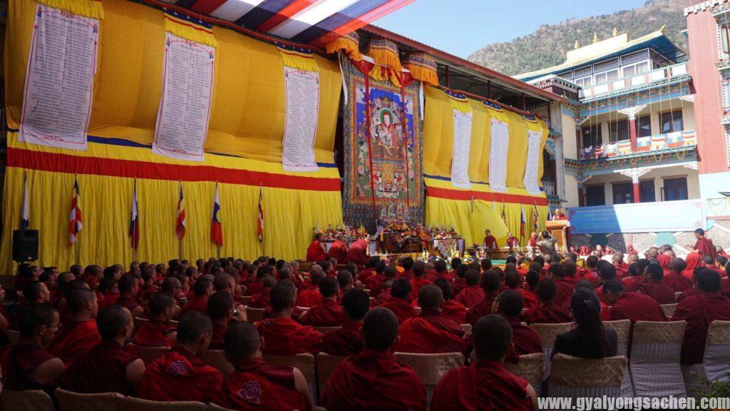 མོན་གྷོ་བཤད་གྲྭ་ནས་དགེ་རྒན་གཉིས་དང་དགེ་འདུན་ཉེར་གསུམ་ཕེབས་པ་དང་། ཨེ་ཝཾ་བཤད་སྒྲུབ་ཆོས་འཁོར་གླིང་ནས་དགེ་འདུན་བཅུ་ཕེབས་པ་དང་། རིམ་འབིགས་བཤད་གྲྭ་ནས་དགེ་འདུན་བཅུ་གསུམ་ཕེབས་པ་དང་ཕྱོགས་མཐའ་ཁག་གི་བཤད་གྲྭ་ནས་ཕེབས་དགེ་འདུན་པའི་གྲངས་༢༡༡ དང་ས་སྐྱ་མཐོ་སློབ་ནས་མཁན་སློབ་ཆ་ཚང་མཉམ་ཞུགས་གནང་འདུག