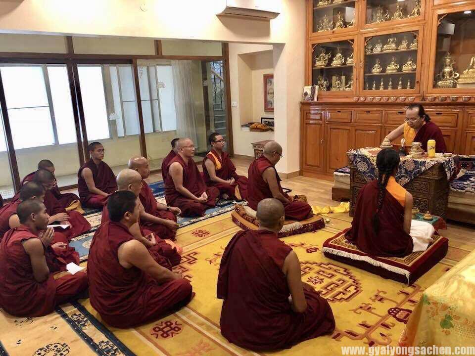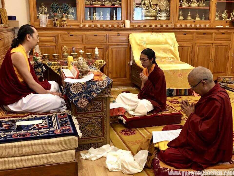 དེ་རིང་༧སྐྱབས་མགོན་ས་སྐྱ་༧གོང་མ་ཁྲི་འཛིན་རིན་པོ་ཆེ་མཆོག་གིས་༧སྐྱབས་མཆོག་ས་སྐྱའི་འཁོན་གདུང་ཨ་སངྒ་བཛྲ་རིན་པོ་ཆེ་མཆོག་དང་དཔལ་ས་སྐྱའི་མཐོ་སློབ་ཀྱི་མཁན་ཆེན་ནམ་ཡོངས་འཛིན་མཁན་ཆེན་བསོད་ནམས་རྒྱ་མཚོ་མཆོག དེ་བཞིན་དུ་འཁོར་ཆགས་མཁན་སྤྲུལ་རིན་པོ་ཆེ་མཆོག་དང་ས་པཎ་ལྔ་རིག་མཐོ་སློབ་ཀྱི་གཉུག་མར་གནས་པའི་དགེ་སློབ་ཡོངས་ལ་ས་འཇམ་སྦགས་སྒྲུབ་དང་། འབྱུང་འདུལ་རྗེས་གནང་ཟབ་མོ་སོགས་ཟབ་མོའི་བཀའ་དབང་སྩོལ་གནང་འདུག