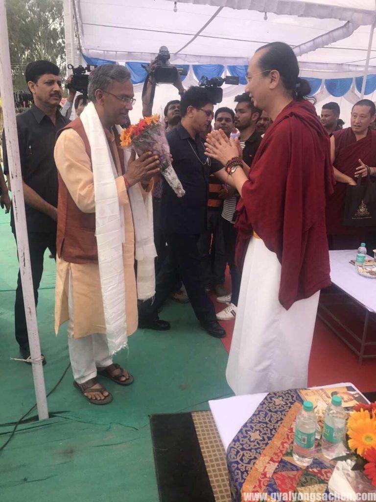 ) ནང་པའི་ཆོས་ཚོགས་ཀྱིས་གདན་ཞུ་ལྟར། ༸ སྐྱབས་མགོན་ ༸ ས་སྐྱ་༸ གོང་མ་ཁྲི་འཛིན་རིན་པོ་ཆེ་མཆོག་ཆེད་ཕེབས་གནང་བ་དང་གནད་སྨིན་དོན་འབྲས་སུ་གྱུར་བའི་བཀའ་སློབ་གནང་བ་དང་། དེ་བཞིན་དུ་རྒྱ་གར་བྱང་ཕྱོགས་ཀྱི་མངའ་སྡེ་ཨུཏ་ཏར་ཁན(Uttarakhand) གྱི་སྤྱི་ཁྱབ་བློན་ཆེན་མཆོག་དང་མཇལ་འཕྲད་དང་། སངས་རྒྱས་ཐུགས་རྗེ་ཅན་གྱི་རྗེས་འབྲང་རྒྱ་གར་རྒྱལ་ཁབ་ཆེན་པོའི་རྩ་ཁྲིམས་མཛད་པ་པོ་མཁས་དབང་སྐུ་ཞབས་ཨམ་བེཌ་ཀར་གྱི་དུས་དྲན་སྲུང་བརྩི་ཞུ་གནང་འདུག དེ་བཞིན་མཛད་སྒོ་ཐོག་མཁའ་འགྲོ་མ་དཔལ་ས་སྐྱའི་བདག་མོ་སྐལ་ལྡན་མཆོག་དང་ས་གནས་འགན་འཛིན་སོགས་གནད་ཡོད་མི་སྣ་མང་པོ་དང་རྒྱ་གར་ཡུལ་མི་བཅས་མཉམ་ཞུགས་གནང་འདུག
