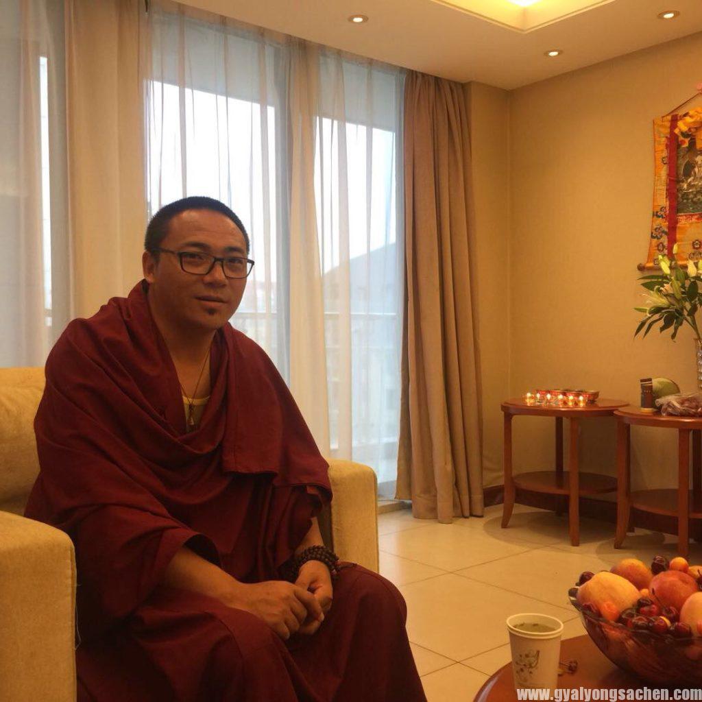 དགུང་ལོ་བཅོ་ལྔའི་གོང་གི་གསན་ཡིག་ནང་གསལ་བ་བཞིན་སྐུ་ན་དེ་ཙམ་ནས་དེ་ལྟར་གསན་བསམ་རྒྱ་མཚོའི་ཕ་རོལ་དུ་སོན་ཏེ།ཇི་སྐད་དུ།དེང་དུས་བརྩེ་བ་ཆེན་པོ་ཡི།།མདོ་དང་སྔགས་ཀྱི་བསྟན་པ་ནི།།ཚེས་པའི་ཟླ་བའི་རྗེས་འགྲོ་བ།ཁྱེད་ཀྱི་འཕྲིན་ལས་ལགས་པར་ཁུམས།ཞེས་གསུངས་པ་ལྟར་ཕྱི་ལོ་༡༩༥༩རང་བྱུང་བཅུ་དྲུག་པའི་ས་ཕག་ལོའི་བོད་ཟླ་དང་པོར་དཔལ་ལྡན་ས་སྐྱ་པའི་བསྟན་པ་ཡོངས་ཀྱི་བདག་པོར་དངོས་སུ་བཞེངས་པ་ནས་བཟུང་ད་བར་མི་ལོ་ཧྲིལ་བོ་ལྔ་བཅུ་རྩ་བརྒྱད་ཐམ་པའི་རིང་ལ་བརྩེ་ཆེན་ས་སྐྱ་པའི་བསྟན་པ་འདི་ཉིད་ཀླ་ཀློའི་བསམ་སྦྱོར་ངན་པའི་སྡུག་རྩུབ་ལས་ཡོངས་སུ་བསྐྱབས་ཤིང་ཡར་ངོའི་ཟླ་བའི་རྗེས་སུ་འགྲོ་བ་དང་།ཇི་སྐད་དུ།ཆོས་ཀྱི་སྣང་བས་མ་ཁྱབ་པའི་།།ཅི་ཡང་སྨྲ་བའི་ཡུལ་རྣམས་སུ།།ཐུབ་དབང་བསྟན་པའི་ཉི་མ་ནི།།ཁྱེད་ཀྱི་ཐུགས་རྗེའི་ཤིང་རྟས་དྲངས།།ཞེས་གསུངས་པ་ལྟར་འཛམ་གླིང་མཐའ་གྲུ་ཀུན་ལ་རྒྱལ་བསྟན་ཉིན་མོ་ལྟར་གསལ་བར་བྱས་པ་མ་ཟད།བོད་ཀྱི་བསྟན་སྲིད་ཀྱི་ཆགས་འཇིག་ཉིད་ལ་དགོངས་ནས་དབུ་ནག་བོད་མའི་ཡོངས་ཀྱི་མགོན་སྐྱབས་དམ་པ་༸གོང་ས་ལྷ་མའི་རྣམ་འདྲེན་རྒྱལ་དབང་ཐམས་ཅད་མཁྱེན་པ་༸གོང་ས་བཅུ་བཞི་པ་ཆེན་པོ་མཆོག་ལ་རྒྱབ་འདུན་ངོ་ལྐོག་མེད་པར་བོད་ཀྱི་ཆོས་སྲིད་ཀྱི་དབུ་ཁྲིད་དམ་པར་གོང་དུ་བཀུར་ཞིང་མཐུ་དཔུང་ནུས་པ་གཅིག་ཏུ་སྦྲེལ་ནས།ཆོས་བརྒྱུད་ཁག་གི་བར་དང་ཆོལ་ཁ་ནང་ཁུལ་མཐུན་འབྲེལ་གོང་བུ་གཅིག་གྱུར་ཡོང་བར་བབ་རླིང་བརྟན་གསུམ་གྱིས་ཤུགས་སྣོན་རྩེ་གཅིག་ཏུ་གནང་བས་མཚོན་བོད་བསྟན་སྲིད་སྤྱི་དང་བྱེ་བྲག་ལ་བླ་ན་མེད་པའི་བཀའ་དྲིན་བསྐྱངས་ཡོད་པ་ཡང་།ང་ཚོ་སྤྱི་བོ་གནམ་བསྟན་བོད་མའི་ཡོངས་ཀྱི་ཡིད་ངོ་ན་ཁྲ་ལམ་མེར་གསལ་བསྡད་ཡོད་པས།ངས་འདིར་ཚིག་གི་སྤྲོས་པ་དགོས་དོན་མ་མཆིས་པ་བཞིན་ད་ནི་འདིར་མཇུག་བསྡུ་བར་བྱའོ།།
