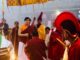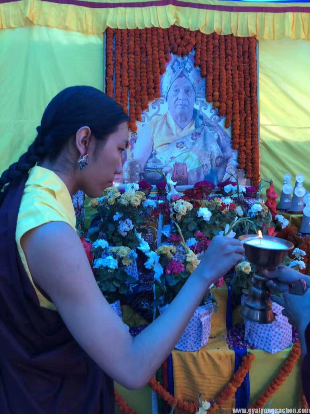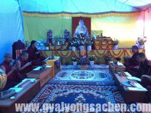 མཆོག་འཁོར་ལོ་མགོན་པོ་འཁོན་གདུང་ཨ་སངྒ་བཛྲ་རིན་པོ་ཆེ་དབུ་བཞུགས་ཐོག་རང་རིག་དགོན་པའི་མཁན་པོ་དགེ་འདུན་རྣམས་དང་། འདི་གའི་དགེ་སློབ་རྣམས་ནས་སྔ་དྲོ་བླ་མཆོད་དང་ཕྱི་དྲོ་བསྐང་སོ་དང་ཚོགས་འཁོར་འབུལ་འཆར་བཅས་རེད་འདུག