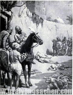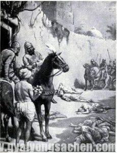 བཙན་རྫོང་ནང་གཉུག་མར་གནས་པའི་བྲམ་ཟེའི་ཡོད་ཚད་མགོ་རིལ་བཟོས་ཏེ་སྐེ་བཅད། ཧིན་དྷུའི་རྩ་ཆེའི་དཔེ་ཆ་ཡོད་ཚད་ཁ་ཆེ་བས་བེད་སྤྱོད་གང་དྲན་བཏང་བར། ཧིན་དྷུ་བ་མང་པོས་ཧིན་དྷུའི་དཔེ་ཆ་རྣམས་ལ་བརྩི་བཀུར་བྱ་དགོས་པའི་རེ་སྐུལ་ཞུས་པར་ཧིན་དྷུ་བ་ཡོད་ཚད་བསད།