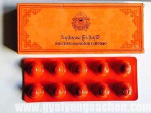 ༡ རིན་ཆེན་གྲང་སྦྱོར་རིལ་ནག་ཆེན་མོ་དང་། ༢ རིན་ཆེན་རཏྣ་བསམ་འཕེལ།(མུ་ཏིག་བདུན་བཅུ།) ༣ རིན་ཆེན་ཚ་སྦྱོར་ཆེན་མོ། ༤ རིན་ཆེན་མང་སྦྱོར་ཆེན་མོ། ༥ རིན་ཆེན་བཙོ་བཀྲུ་ཟླ་ཤེལ། ༦ རིན་ཆེན་གཡུ་རྙིང་ཉེར་ལྔ། ༧ རིན་ཆེན་ལྕགས་རིལ་ཆེན་མོ། ༨རིན་ཆེན་བྱུར་དམར་ཉེར་ལྔ་བཅས་ཡིན།
