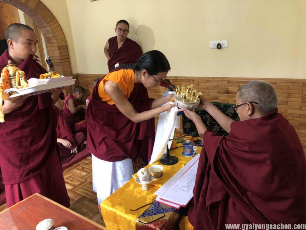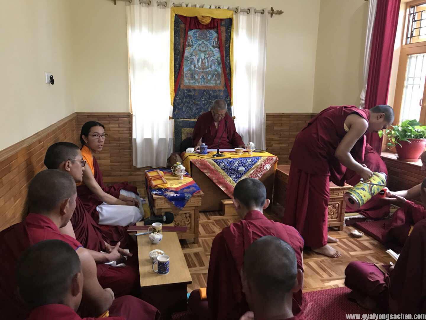 དེ་རིང་ཕྱི་ལོ་ ༢༠༡༨ ཟླ་ ༧ ཚེས་ ༢ རེས་གཟའ་ཟླ་བ་གཟའ་སྐར་དགེ་བའི་ཉིན་སྐྱབས་རྗེ་མཁན་རིན་པོ་ཆེ་བསོད་ནམས་རྒྱ་མཚོ་མཆོག་ནས་རྒྱ་གར་བྱང་ཕྱོགས་ཧི་མ་ཅལ་མངའ་སྡེ་ཁུལ་གྱི་ས་གནས་མཱ་ནཱ་ལིར་༧སྐྱབས་རྗེ་འཁོན་གདུང་ཨ་སངྒ་རིན་པོ་ཆེ་མཆོག་དང་དོན་གཉེར་ཅན་གྱི་སློབ་མ་མི་ཉུང་བ་ཞིག་ལ་དབུ་མའི་རྩ་གཞུང་རྩ་བ་ཤེས་རབ་ལ་ཟབ་པ་དང་རྒྱ་ཆེ་བ་གཉིས་ཀྱི་སྒོ་ནས་འཇུག་ཅིང་།