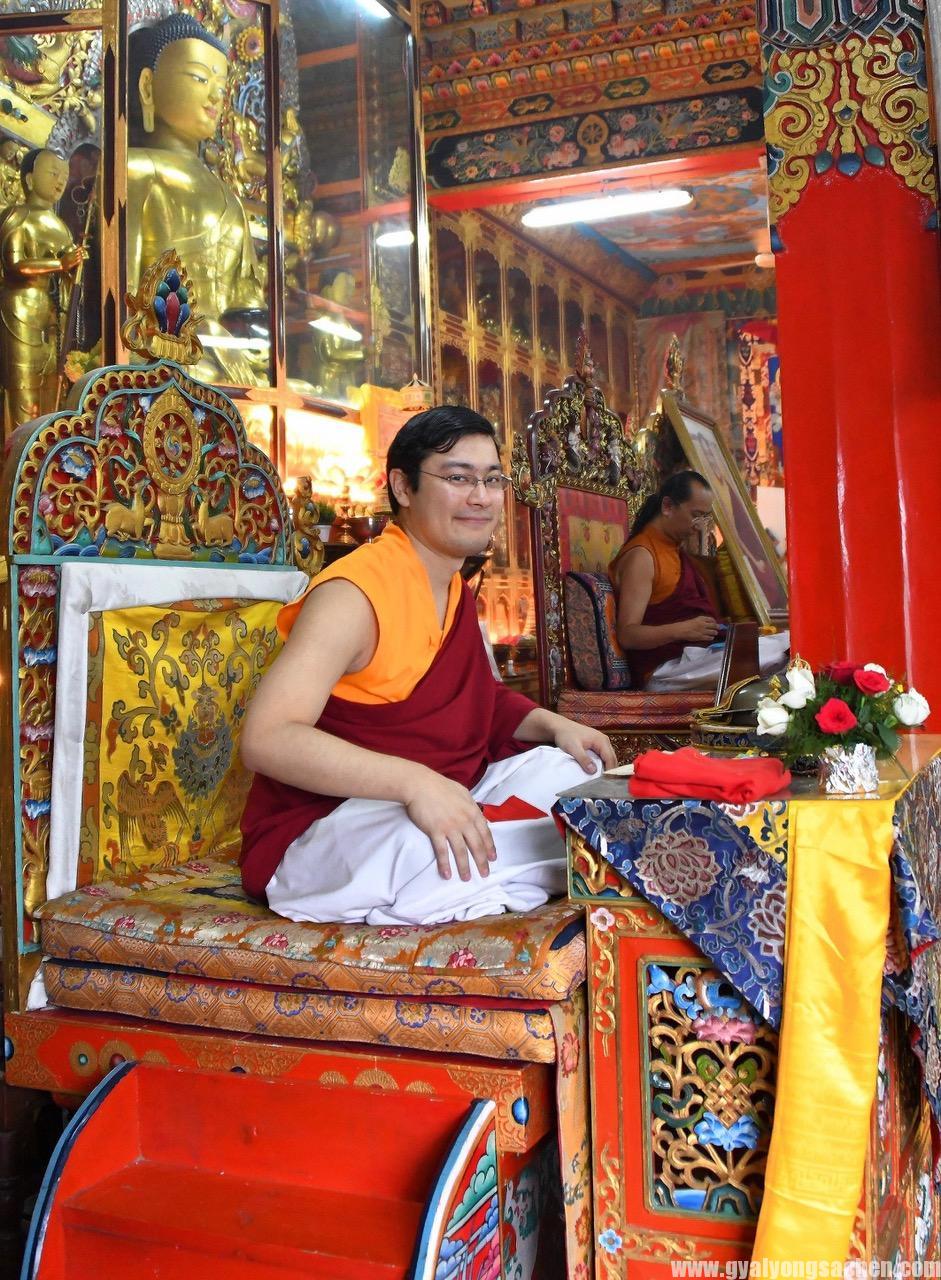 དཔལ་ལྡན་རྫོང་པའི་གདན་ས་གོང་དཀར་ཆོས་སྡེའི་ཡན་ལག་གོང་དཀར་ཚེ་སྒྲུབ་ལྷ་ཁང་དུ། མི་མང་དང་ལྷན་དུ་ཞབས་བརྟན་གསོལ་འདེབས་གསོག་སྒྲུབ་དང་། མཁན་ཆེན་ལུང་རིགས་སེང་གེ་མཆོག་དང་།