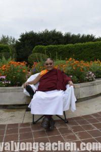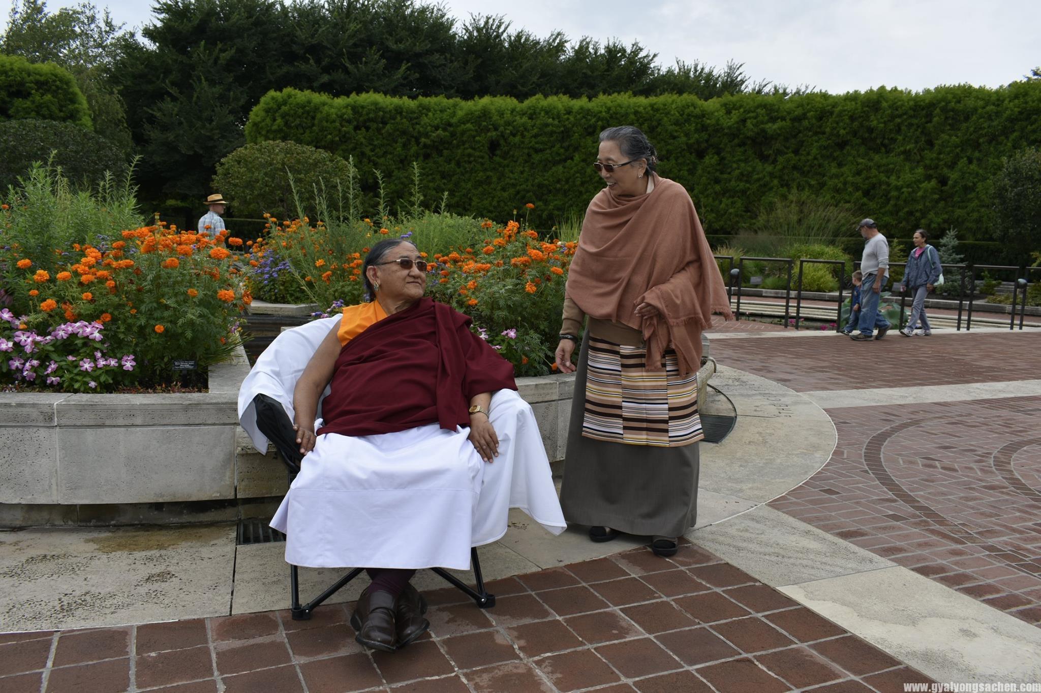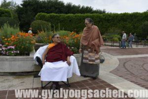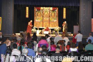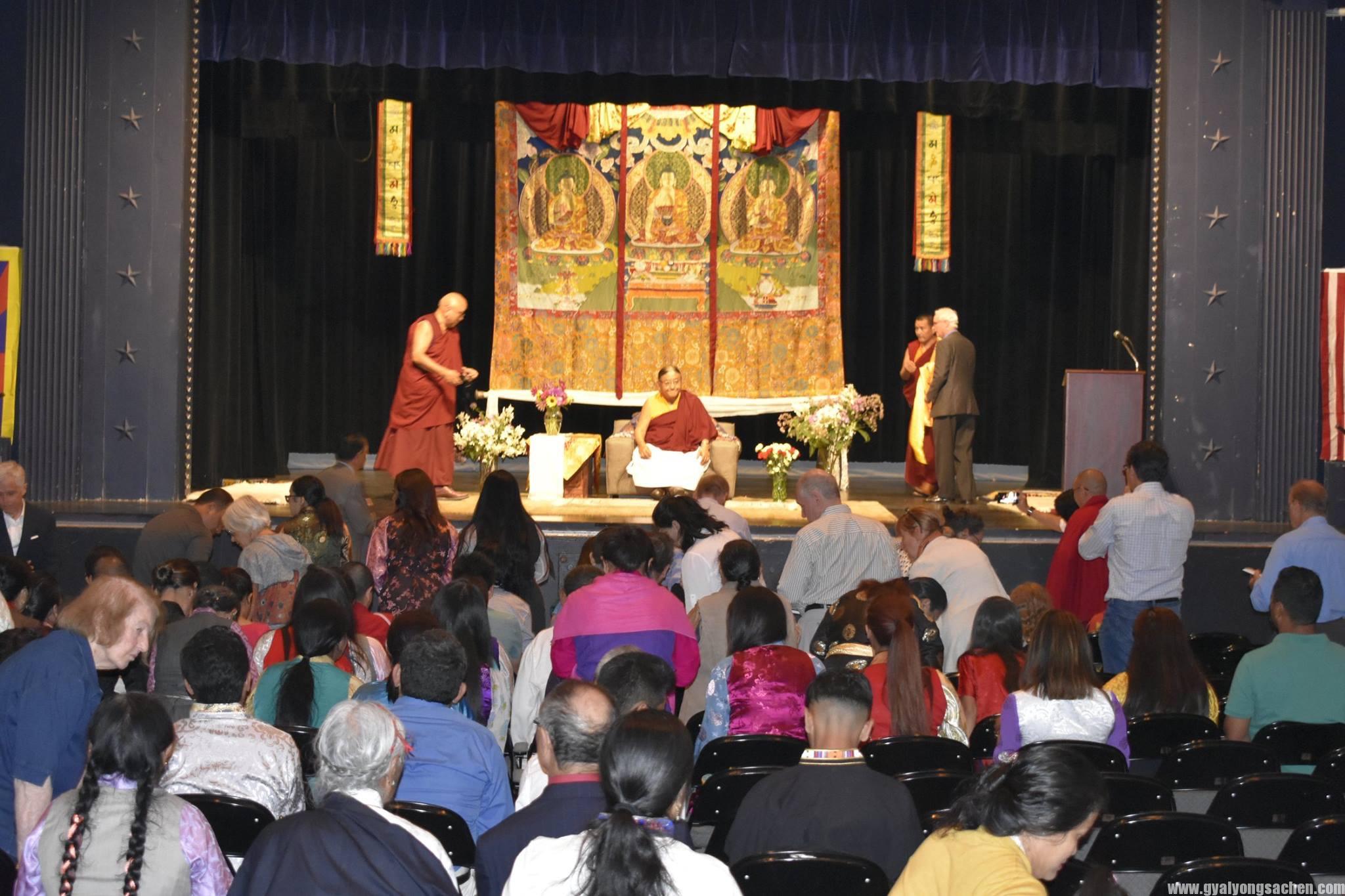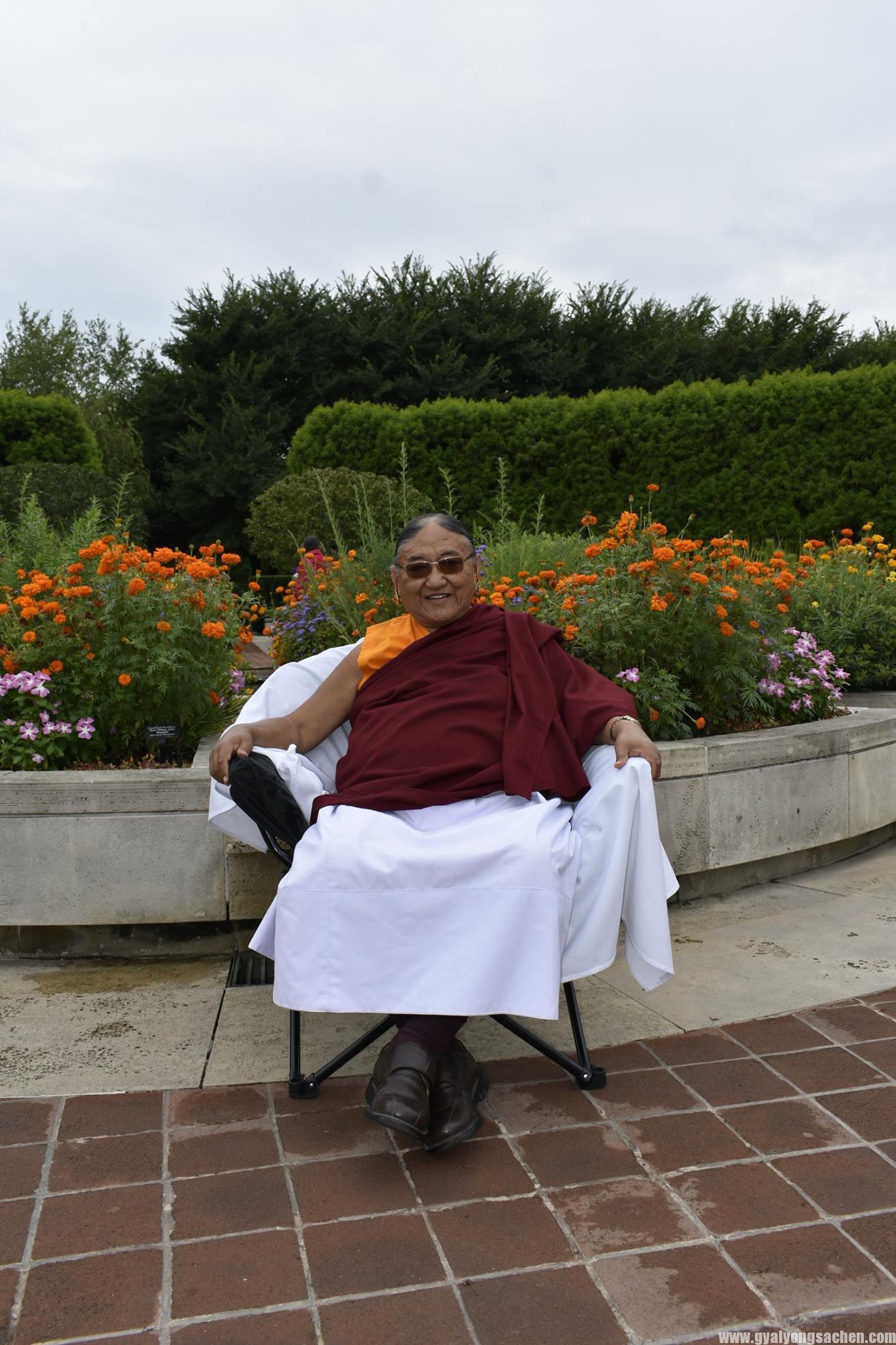 གུས་པའི་བརྩེ་བའི་གྲོགས་དབྱིན་བོད་ཕོ་མོ་རྣམས་དང་བརྩེ་བའི་ནང་མི་སྤུན་མཆེད་ལ་སོགས་པའི་རྒྱབ་བསྐྱོར་འོག་༧ས་སྐྱ་གོང་མ་ཁྲི་ཆེན་རིན་པོ་མཆོག་མི་འདོད་པའི་རྐྱེན་ཅི་ཡང་མེད་པར་གདན་ཞུ་ཐུབ་པ་འདི་ནི་བརྗོད་ནས་རྫོགས་དཀའ་བའི་སྤྲོ་དགའ་བའི་ཡུལ་དང་། བདག་ཅག་རྣམས་ཀྱི་སྐྱེ་བ་ནས་སྐྱེ་བར་བསགས་པའི་བསོད་ནམས་དང་སྨོན་ལམ་དང་དམ་ཚིག་གཙང་མའི་མཐུ་ལས་བྱུང་བ་སྨྲས་ཅི་དགོས། སྐབས་འདི་དང་བསྟུན་ནས་ཁོང་གི་ལོ་རྒྱུས་མཛད་རྣམ་དང་། བོད་དུ་ཡོད་པའི་ཁོང་གི་དགོན་པ་ཁག་དང་སྐུ་པར་སྙིང་པ་ལ་སོགས་འགྲེམས་སྟོན་མཛད། དེ་བཞིན་དམིགས་བསལ་ཀྱི་ཉིན་དང་པོར་དབྱིན་ཇི་དང་བོད་པའི་ཆོས་གྲོགས་རྣམས་ལ་གསུང་ཆོས་”ཞེན་པ་བཞི་བྲལ་”གྱི་གསུང་ཆོས་གནང་མ་ཟད་མཇུག་ཏུ་དྲི་བ་དྲིས་ལན་གྱི་གོ་སྐབས་ཀྱང་གནང་།
