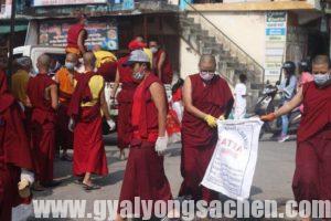 དེ་བཞིན་དུ་གླིང་ཚང་གཞིས་ཆགས་སུ་གླིང་གེ་སར་སློབ་གྲྭའི་དགེ་སློབ་རྣམ་པ་བཅས་ཐུན་མོང་ནས་༧ སྐྱབས་མགོན་ས་སྐྱ་༧་གོང་མ་ཁྲི་རྡོ་རྗེ་འཆང་མཆོག་སྐུ་ཚེ་ཡུན་རིང་དུ་བརྟན་པའི་ཆེད་དུ་དམིགས་ནས་ཁོར་ཡུག་གཙང་བཟོ་བྱས་པའི་ཞི་བདེའི་ལས་འགུལ་ཞིག་གོང་གི་གྲྭ་ཚང་དང་སློབ་གྲྭ་བཅས་ནས་མཉམ་རུབ་ཐོག་ནས་སྡེ་ར་ལྡུང་ས་གནས་སུ་གཞིས་གྲོང་དང་ལམ་ཟུར། གྲོང་ཁྱེར་དང་གྲོང་ཁུལ་སོགས་ཁྱད་དུ་དམིགས་ནས་དུས་ཚོད་གཏོང་ནས་གད་སྙིགས་གཙང་མར་ཕྱགས་ནས་ཁོར་ཡུག་རྒྱུན་གཏན་མི་འདྲ་བའི་རྣམ་པ་གསར་པ་ཞིག་མཐོང་ཐུབ་པའི་ལས་འགུལ་ཞིག་སྤེལ་འདུག