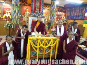 དེ་ཡང་ཟླ་བ་༡༠ པའི་ཚེས ༥ ཉིན་རྡོར་གླིང་ས་སྐྱ་གུམ་དགོན་དུ་དྲོ་༨ ནས་ཐུབ་པ་དམ་ཚིག་གསུམ་བཀོད་རྗེས་གནང་། གནས་བརྟན་བཅུ་དྲུག་གི་རྗེས་གནང་། རིགས་གསུམ་སྤྱིའི་རྗེས་གནང་། ཉིན་རྒྱབ་ཆུ་ཚོད ༢ པ་ནས་ཇོ་ལུགས་སྒྲོལ་མའི་རྗེས་གནང་། བཀའ་གདམས་ལྷ་བཞིའི་ཡ་གྱལ་སྤྱན་རས་གཟིགས་ཀྱི་རྗེས་གནང་། འབྱུང་འདུལ་གྱི་རྗེས་གནང་། ཚེས ༦ ཉིན་རྒྱབ་ནས་བར་དོ་ངོ་སྤྲོད་དང་ཀུན་རིག་རྩ་བའི་དབང་། ཚེས ༧ ཉིན་ལ་མི་མང་ལ་ཚེ་གནང་། ཚེས༨/༩ ལ་སྨན་བླའི་དབང་ཆེན་གནང་།