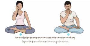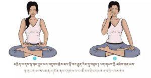 ལུས་དྲང་པོ་བྱས་ཏེ་འདུག་ལ། ལག་གཡོན་གྱི་མཐེབ་མཛུབ་རྩེར་གཏུགས་ཏེ་ཨ་ལོང་ལྟར་བྱས། སོར་མོ་གཞན་རྣམས་རྐྱང་བཞིན་པུས་མོ་གཡོན་གྱི་སྟེང་དུ་གན་རྐྱལ་དུ་འཇོག་ཅིང་། ཁ་མིག་བཙུམས་ནས་ལག་གཡས་ཀྱི་མཐེབ་རྒན་མས་སྣ་ཁུང་གཡས་པ་མནན་ཏེ་སྣ་ཁུང་གཡོན་ནས་གློ་བའི་ནང་རླུང་གིས་མ་གང་བར་དུ་དབུགས་ཡར་འཇིབས། དེ་མཚམས་སྲིན་ལག་གིས་སྣ་ཁུང་གཡོན་པ་མནན་གཡས་པའི་སྣ་ཁུང་ནང་ནས་རླུང་ཕྱི་ལ་མངགས།ཡང་སྣ་ཁུང་གཡས་པ་ནས་རླུང་ཡར་འཐེན། གཡོན་ནས་མར་གཏོང་བ་གཉིས་རེས་མོས་ཀྱིས་བྱ་དགོས། དུས་ཡུན། རེས་མོས་སྐར་མ་གསུམ་ནས་བཅོ་ལྔ་བར། ཚ་དྲོད་ཆེ་སྐབས་སྐར་མ་ལྔ་ལས་རིང་མི་བྱ།