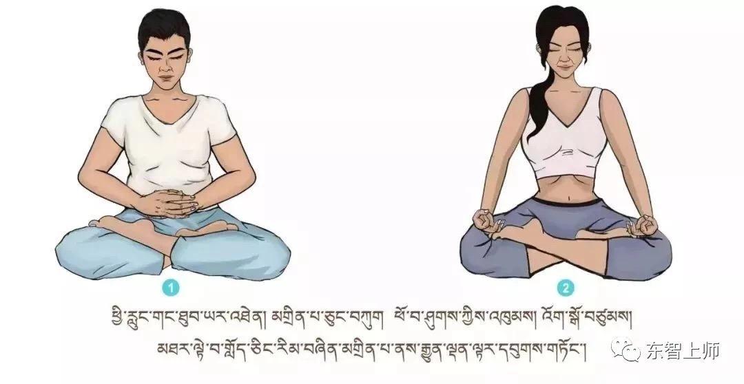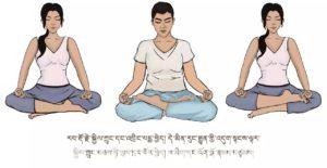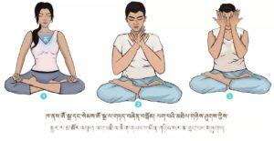 ལག་མཉམ་བཞག་དང་བཅས་མིག་བཙུམས་ལ་ཁ་ནས་ཨོྃ་སྒྲ་སྒྲོག་སྟེ། སེམས་ཨོཾ་སྒྲ་ལ་གཏད་བཞིན་བསྒོམ་པར་བྱ་ལ། མཐར་ལག་པའི་མཐིལ་གཉིས་ཤུགས་ཀྱིས་སྦྱར་ལ་ཡར་མར་ཚ་མོ་མ་བྱུང་བར་འཕུར། དེ་ནས་ལག་མཐིལ་མིག་གཡས་གཡོན་གཉིས་སར་མ་གྲང་བར་གཏུག་དགོས།