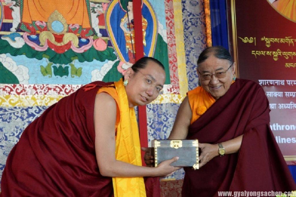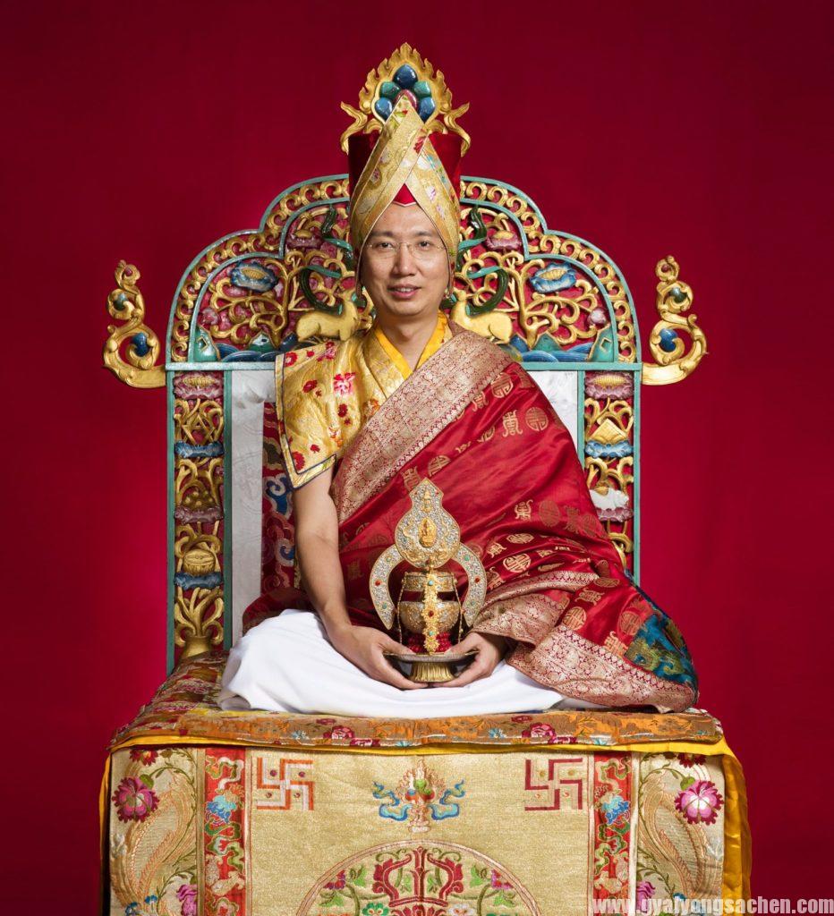 ༢༠༡༧ ལོར་༧སྐྱབས་མགོན་༧གོང་མ་མཆོག་གི་ཕྱག་ནས་ཁོང་ལ་གནང་བསྟུན། ཁོང་ནི་བོད་བརྒྱུད་ནང་བསྟན་ཆོས་ལུགས་ཁག་གི་ནང་ཚན་དཔལ་ལྡན་ས་སྐྱ་པའི་ཁྲི་པ་ཞེ་གཉིས་པའི་ཚུལ་དུ་ཁྲི་འདོན་མངའ་གསོལ་ཞུ་བཞེས་བསྐྱངས་གྲུབ་རྒྱུ་རེད། སླད་ཕྱིན་ཀྱང་ཁྲི་པ་ ༤༢ པའི་གནས་བབ་ཐོག་ཁོང་གིས་སྔོན་གྱི་སངས་རྒྱས་བསྟན་པའི་རྒྱུན་སྲོལ་རྣལ་མ་རྣམས་རང་གནས་སོར་བཞག་དང་དམ་འཛིན་གཅེས་སྤྲས་གནང་བཞིན་ཆོས་རབ་རྣམ་འབྱེད་ཀྱི་ཤེས་རབ་དང། མ་བཅོས་ཞི་བའི་རང་མདངས། དྲང་བདེན་དང་སྙེམ་ཆུང་། ཚད་ལྡན་ཚུལ་མཐུན། དེ་བཞིན་དགོས་མེད་སྣོན་འཕྲི་དང་། སྤྲོས་མེད་སྒྲོ་བཀུར་བྲལ་བའི་ལམ་ནས། འཛམ་གླིང་ཁྱོན་ཡོངས་སུ་གནས་པའི་ཞལ་སློབ་རྣམས་ལ་མུ་མཐུད་ལམ་སྟོན་དང་། ཆོས་ལ་འཇུག་པའི་བསྐུལ་མ་གནང་ཞིན་སངས་རྒྱས་ཀྱི་བསྟན་པ་སྤྱི་དང་། བྱེ་བྲག་དཔལ་ལྡན་ས་སྐྱ་པའི་བསྟན་པ་རིན་པོ་ཆེ་འཛིན་སྐྱོང་སྤེལ་གསུམ་ཐད་རྨད་དུ་བྱུང་བའི་མཛད་ཕྲིན་སྐྱོང་བཞིན་བདག་ཅག་སྐལ་ལྡན་སློབ་བུ་རྣམས་ཀྱི་བསོད་ནམས་ཀྱི་ཞིང་དུ་འཚོ་ཞིང་བཞུགས་བཞིན་པ་ལགས་སོ། །།